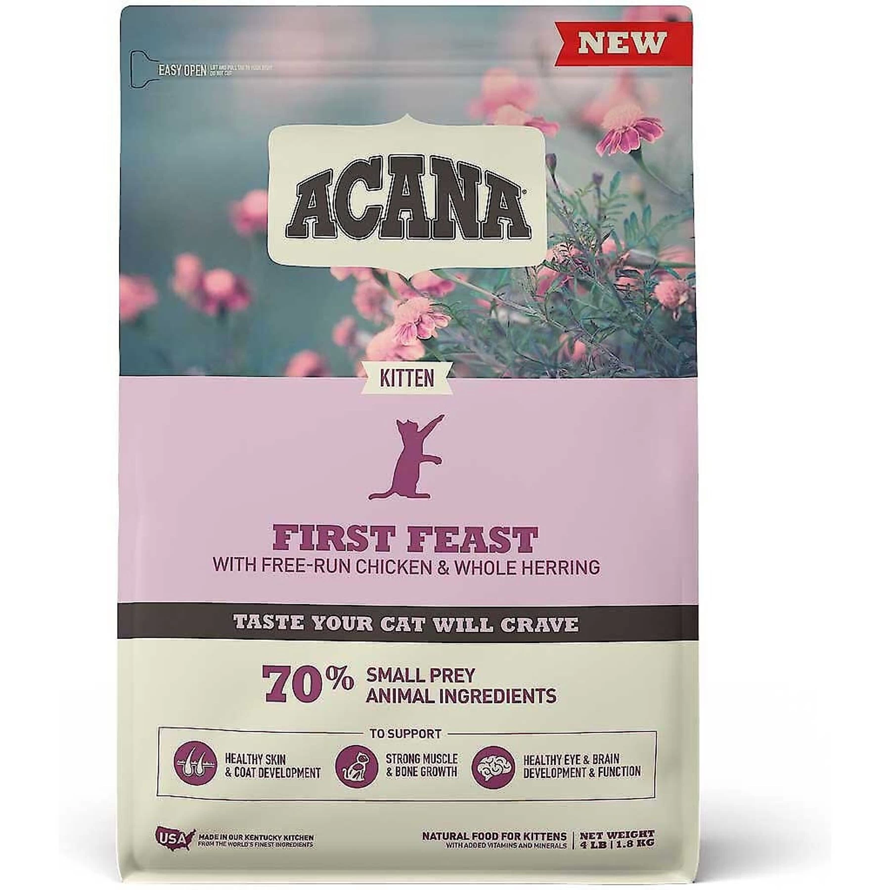 ACANA First Feast High-Protein Kitten Dry Cat Food, 4-lb Bag & Frisco Multi-Cat Unscented Clumping Clay Cat Litter