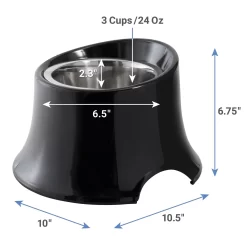 Frisco Premium Wood Elevated Stainless Steel Double Diner Dog & Cat Bowl, Black, 3 Cup