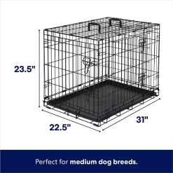 Frisco Heavy Duty Enhanced Lock Sliding Double Door Fold & Carry Wire Dog Crate & Mat Kit, 54 Inch