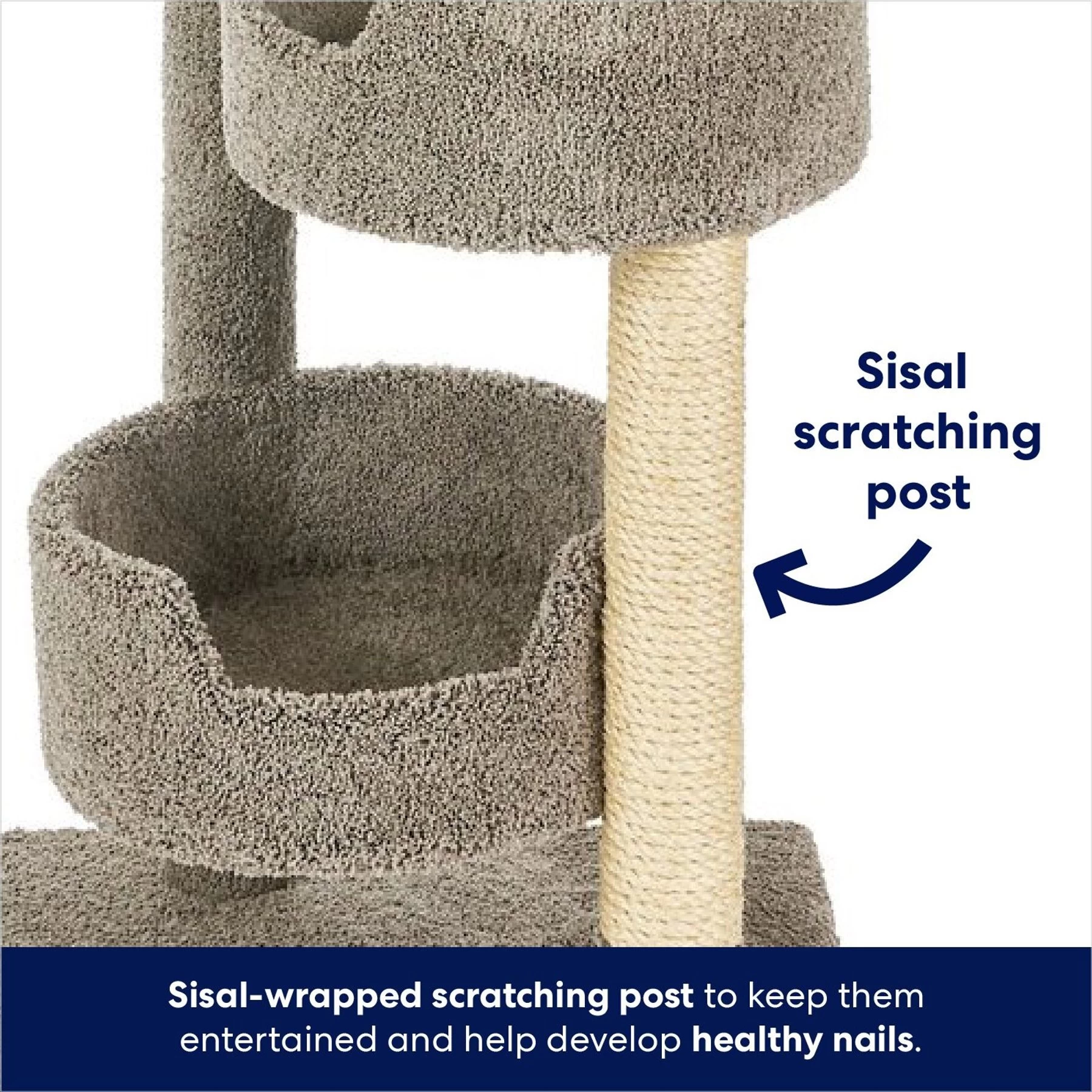 - Sisal scratching post lets your kitty stretch and scratch on the daily. Easy, five-step assembly.