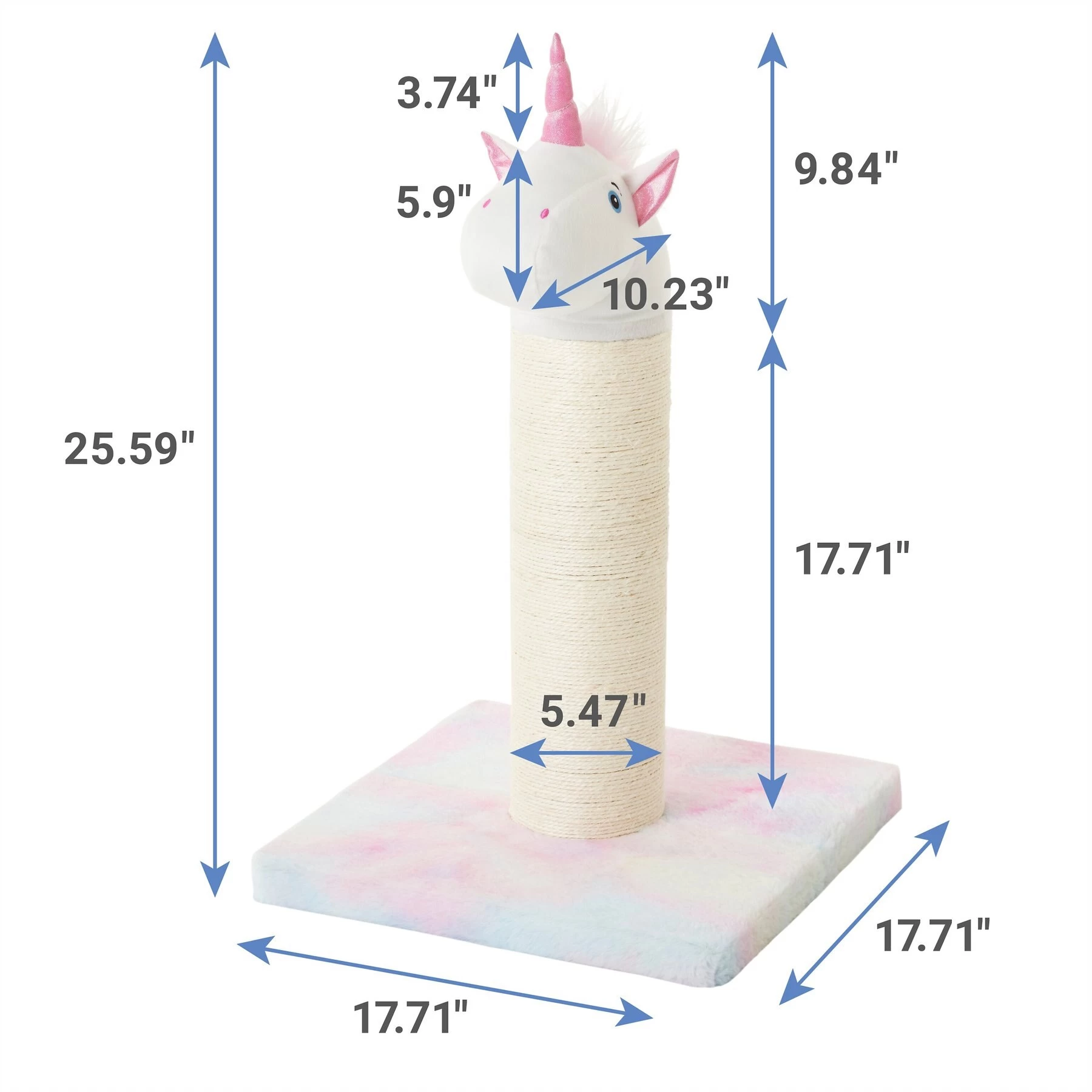 - Sisal-wrapped post promotes satisfying scratching habits and healthy kitty nails.