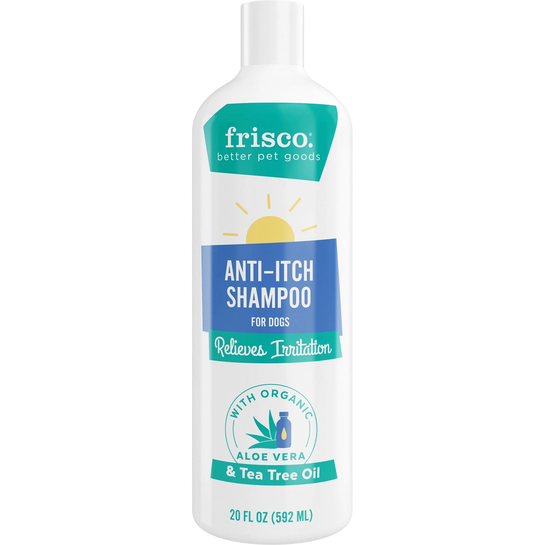 Lather up your pup for soothing relief from itchy skin. This anti-itch dog shampoo, from Frisco by Chewy, cleans and deodorizes with plant-based cleansers, without upsetting irritated skin. It helps to temporarily relieve itching and irritation with a soothing combo of aloe vera juice and tea tree oil, which work together to soothe and ease the skin. There are no parabens, dyes, or artificial fragrances or perfumes—just the natural scent of tea tree oil. For use on dogs only.