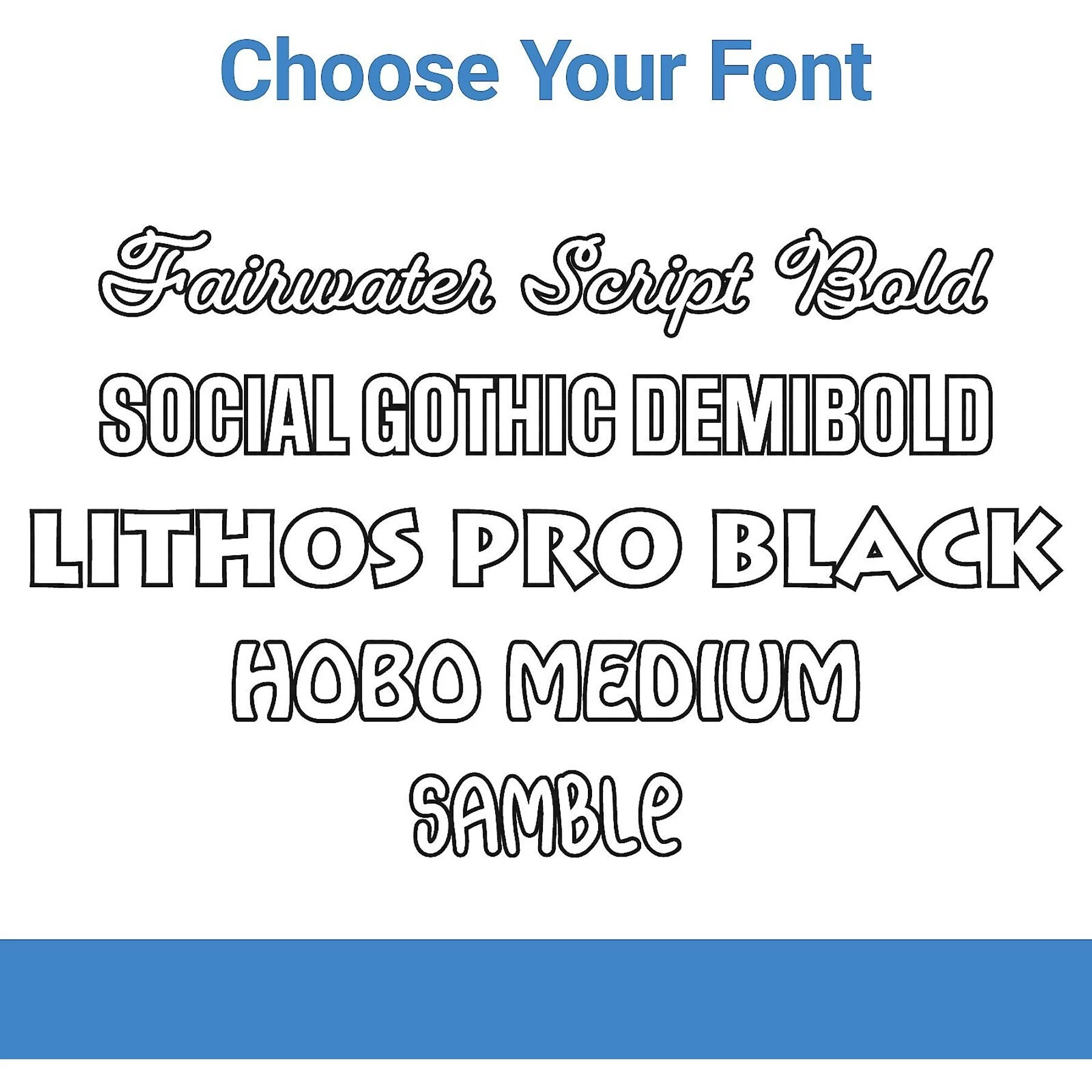 - Personalizable design lets you add up to two lines of text in one of five fonts, with up to 11 characters on the first line and seven characters on the second line.