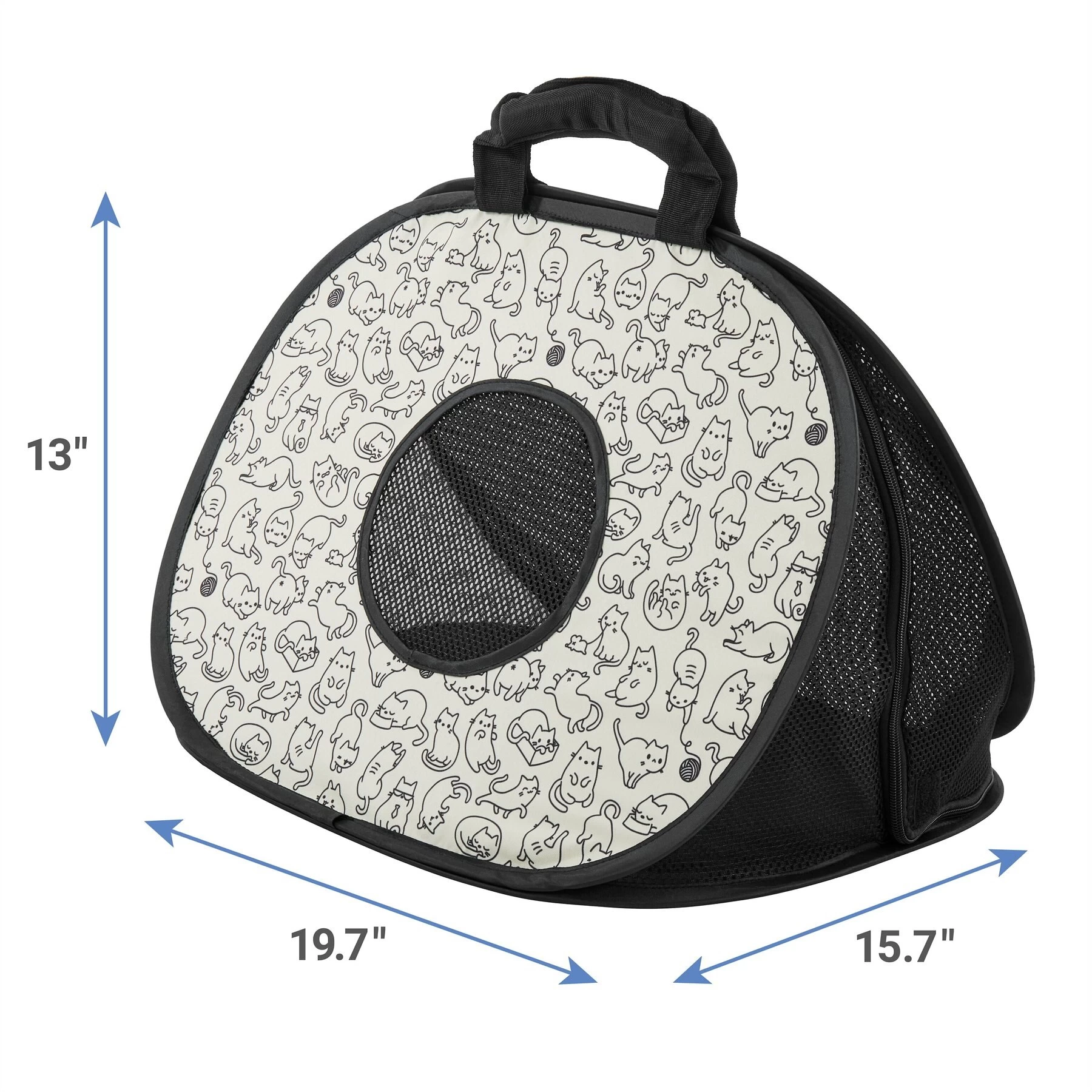 - Chic, stylish cat carrier bag available in an animal sketch pattern or black-and-white plaid.