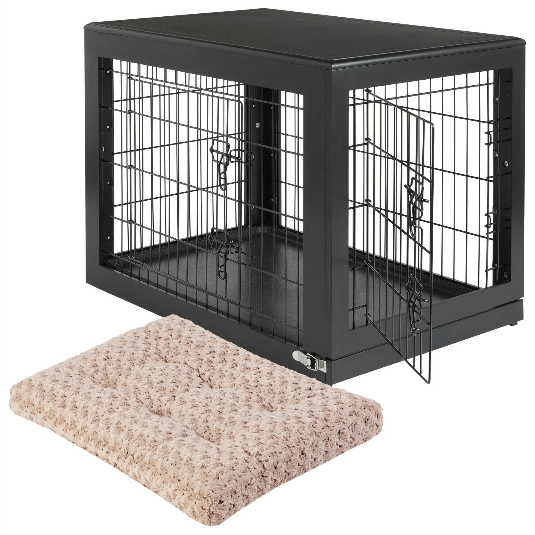 Frisco Double Door Furniture Style Dog Crate, Black & Frisco Swirl Dog Crate Mat