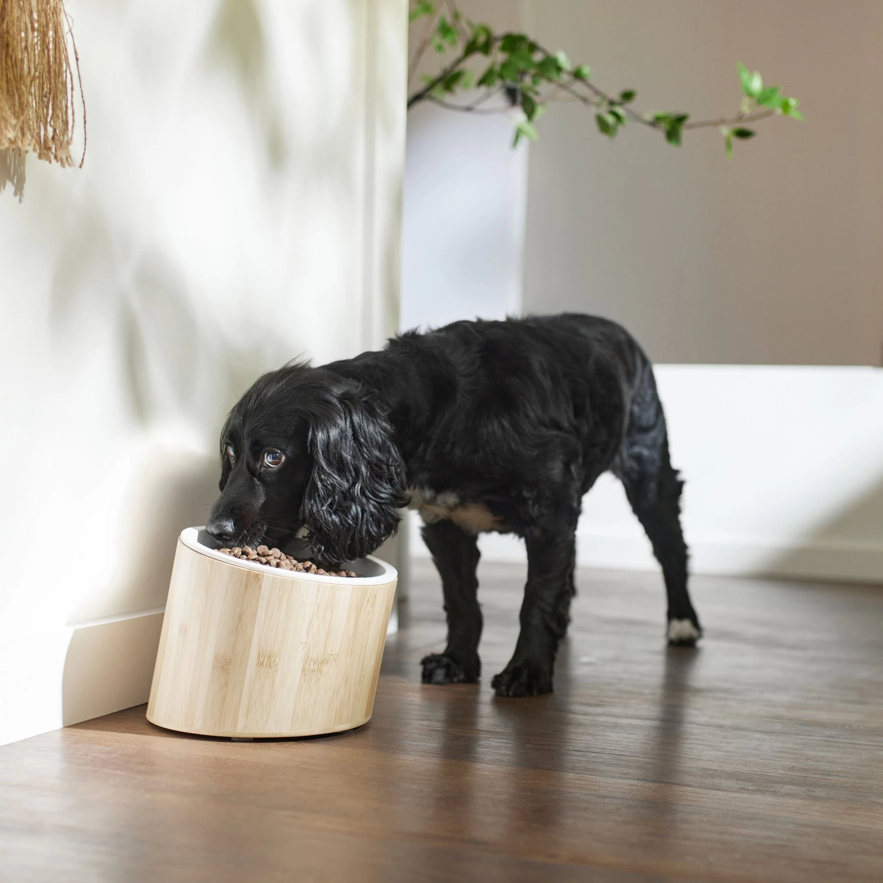 - Frisco Slanted Non-skid Elevated Bamboo Melamine Bowl with Bamboo Stand gives your dog an elegant dish for when it’s time to chow down on their favorite meals.