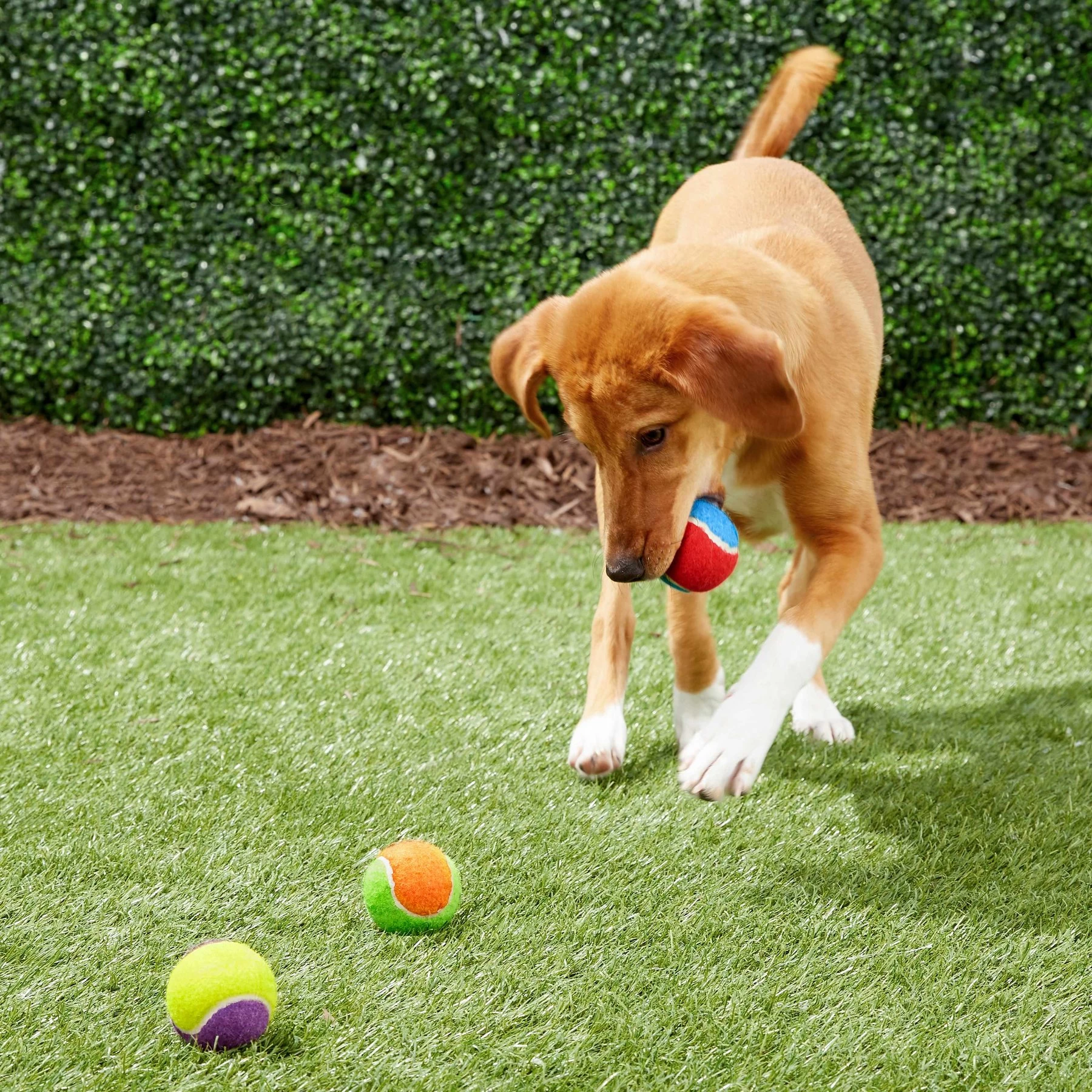 - This set of tennis fetch balls provides the bouncing action dogs love chasing after.