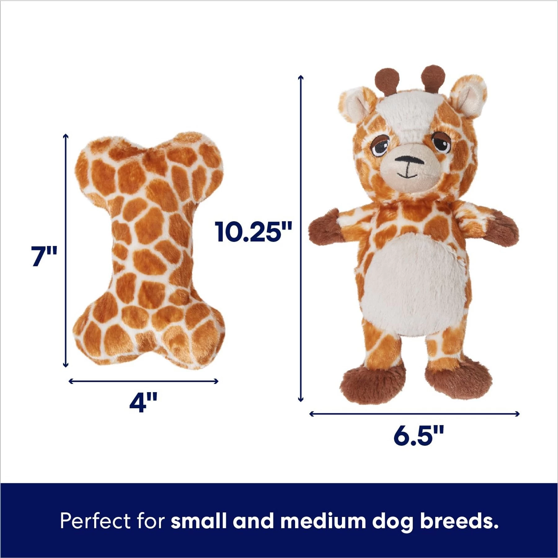 - This giraffe toy two-pack features a giraffe-print bone and a soft giraffe plush for engaging puppy play and naptime snuggles.
