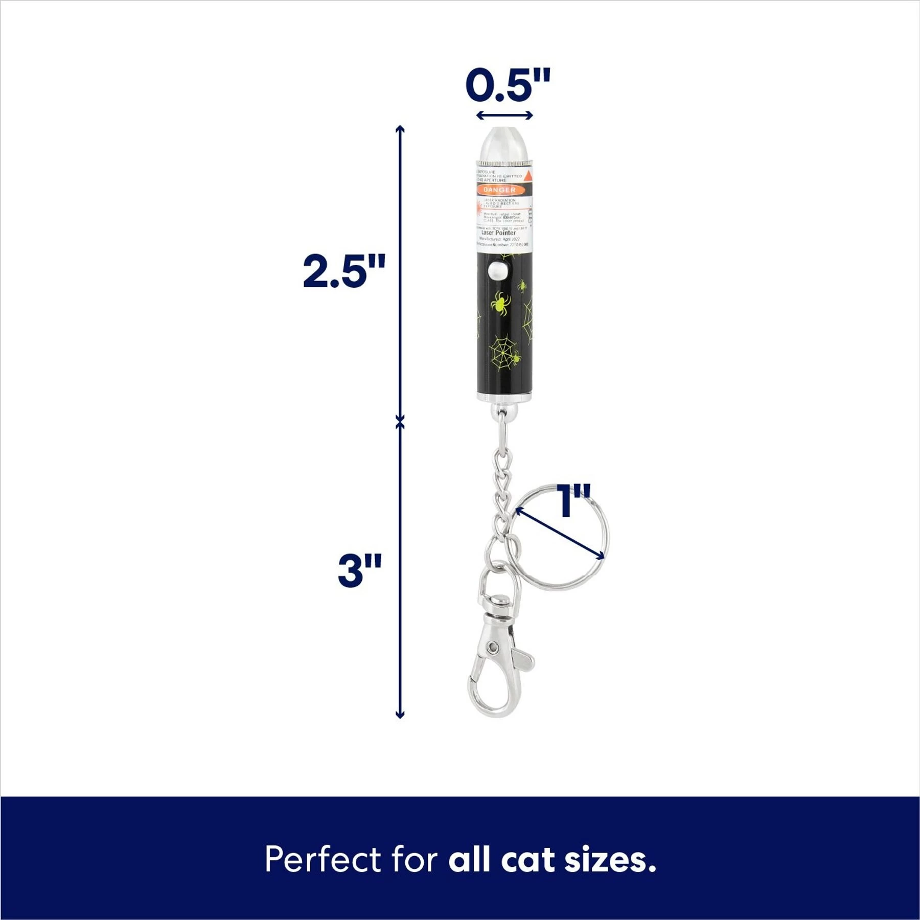 - Frisco Halloween skull laser cat toy includes a laser light with a cap that shapes the laser like a skull for plenty of spooky play sessions.
