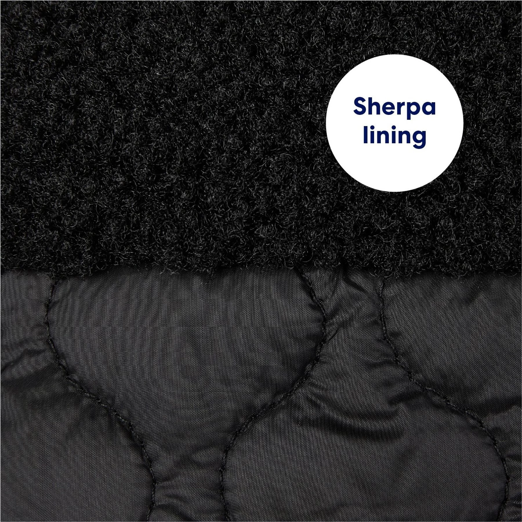 - The onion-quilted shell and sherpa-lined interior of this heavyweight coat offer your pet double the defense against winter chill.