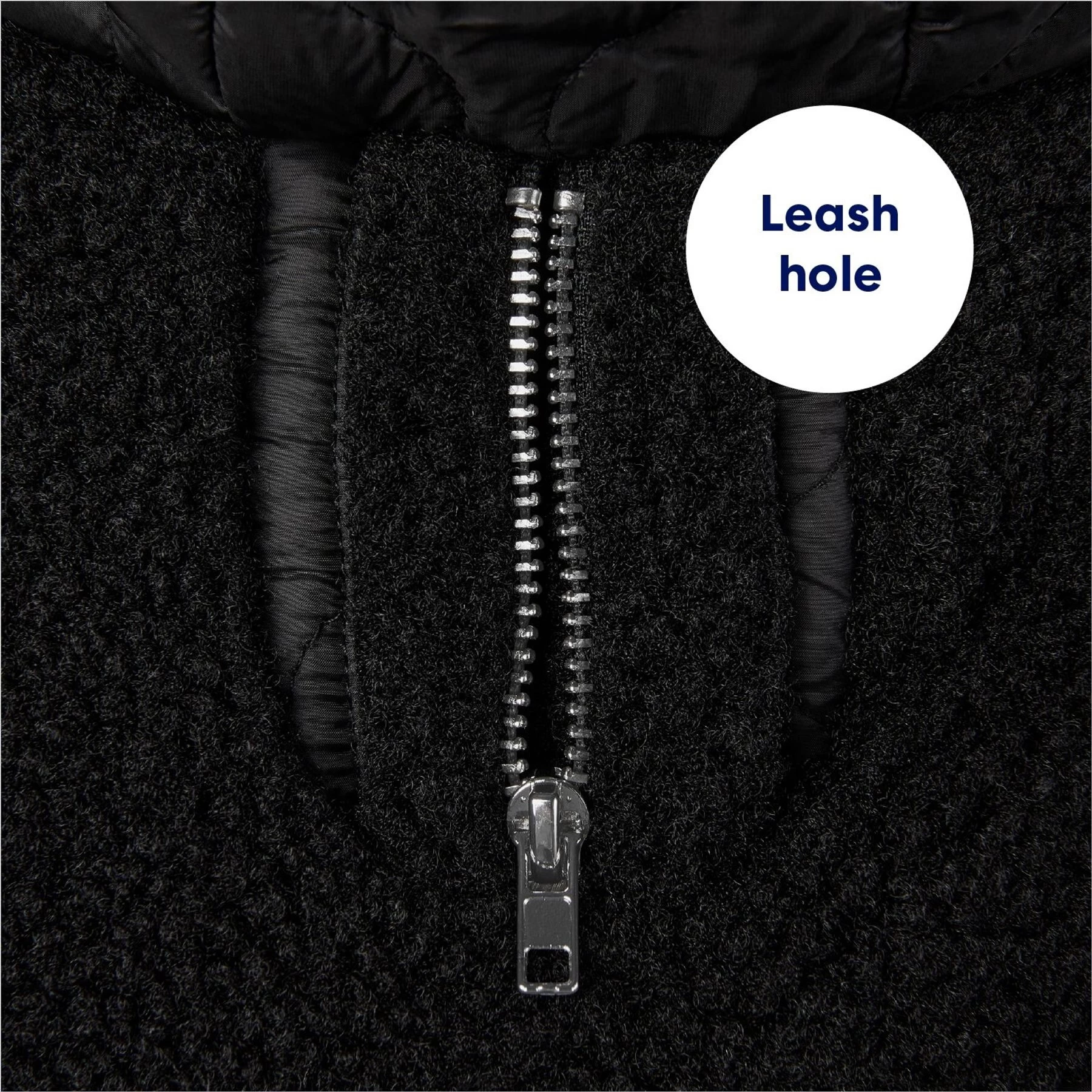 - A sherpa-lined hood, faux pocket welts, and a zippered leash hole add style points and convenience to this cozy pet coat.