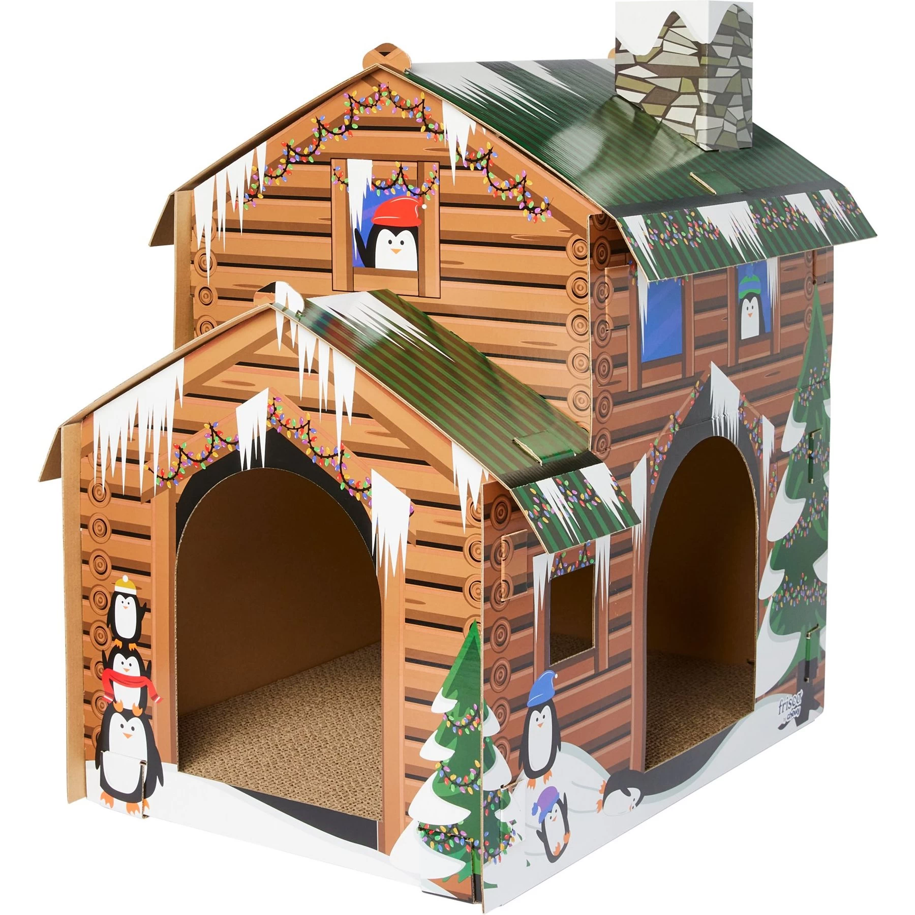 Frisco Holiday Log Cabin Cardboard Cat House