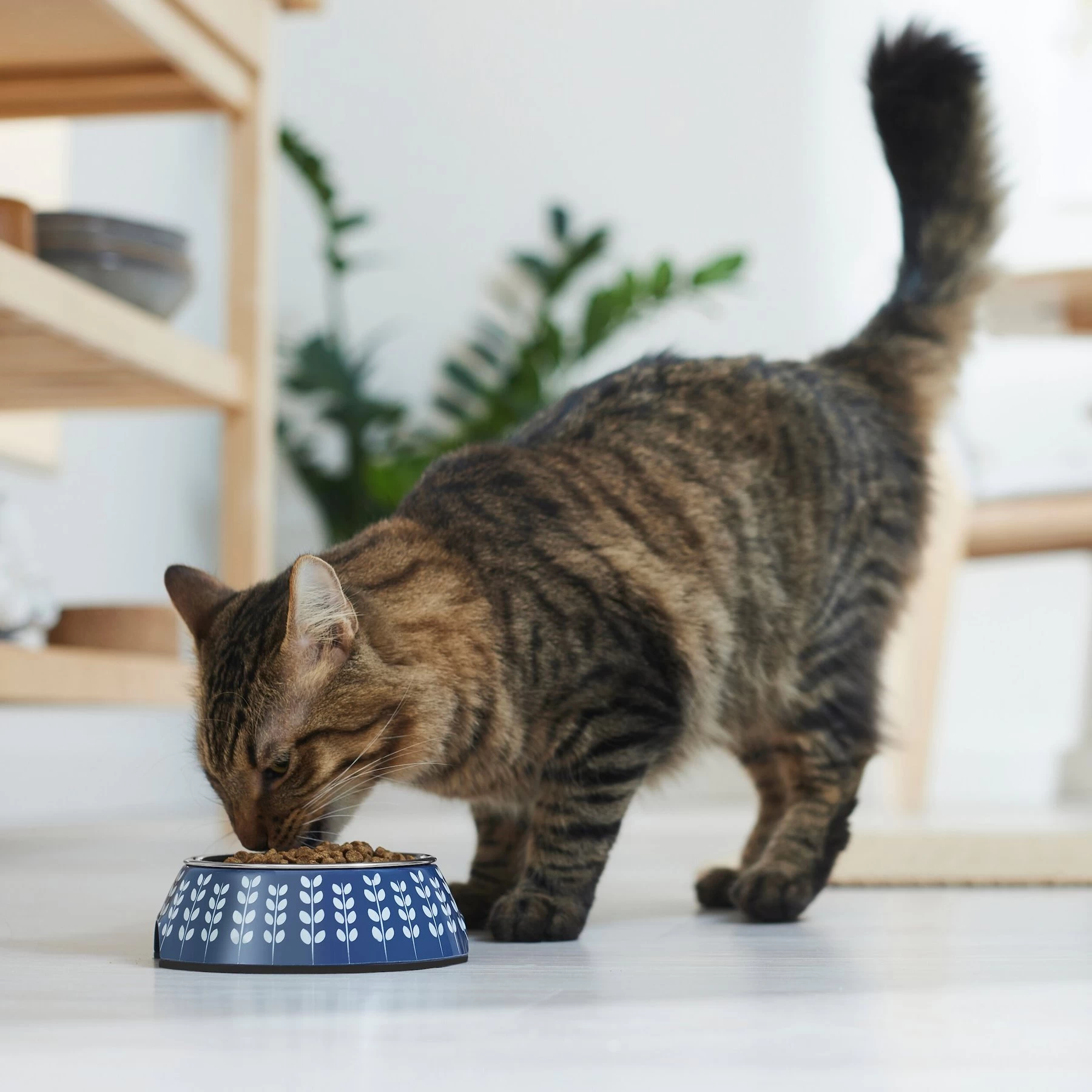 - Melamine base features a leaf design that elevates your dog’s dining experience.
