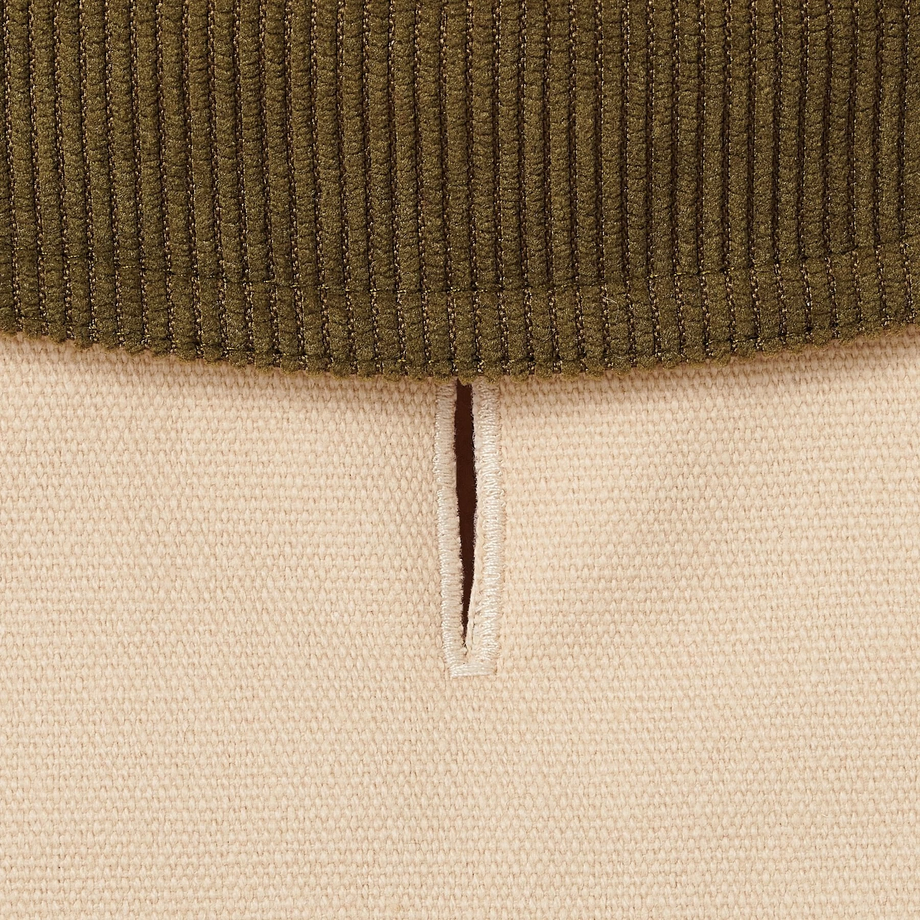 - Stylish details include corduroy olive collar and snap-button pocket.