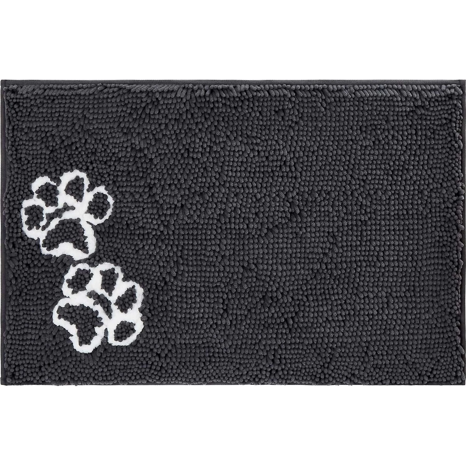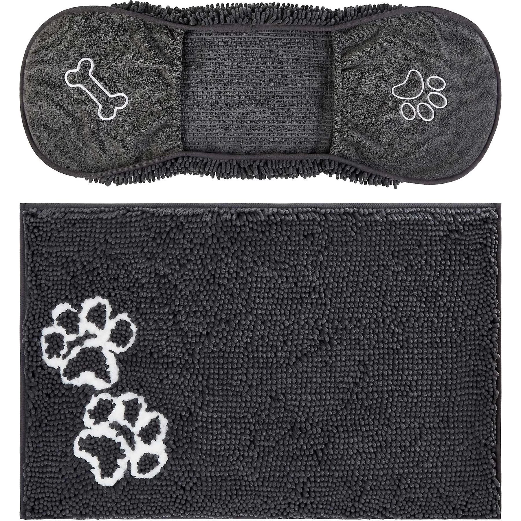 Frisco Microfiber Chenille Shammy Towel & Frisco Microfiber Chenille Paw Print Dog & Cat Mat, Dark Gray