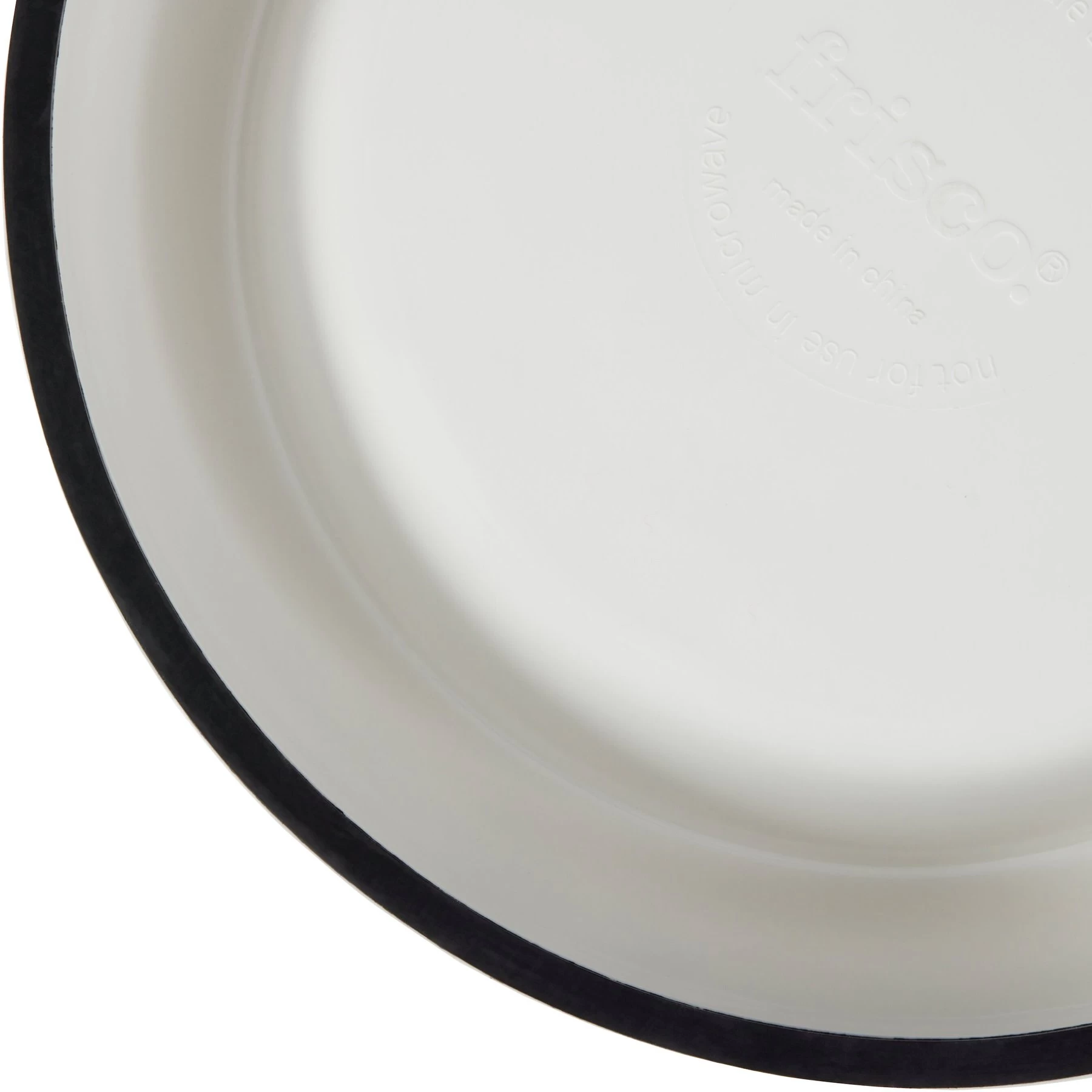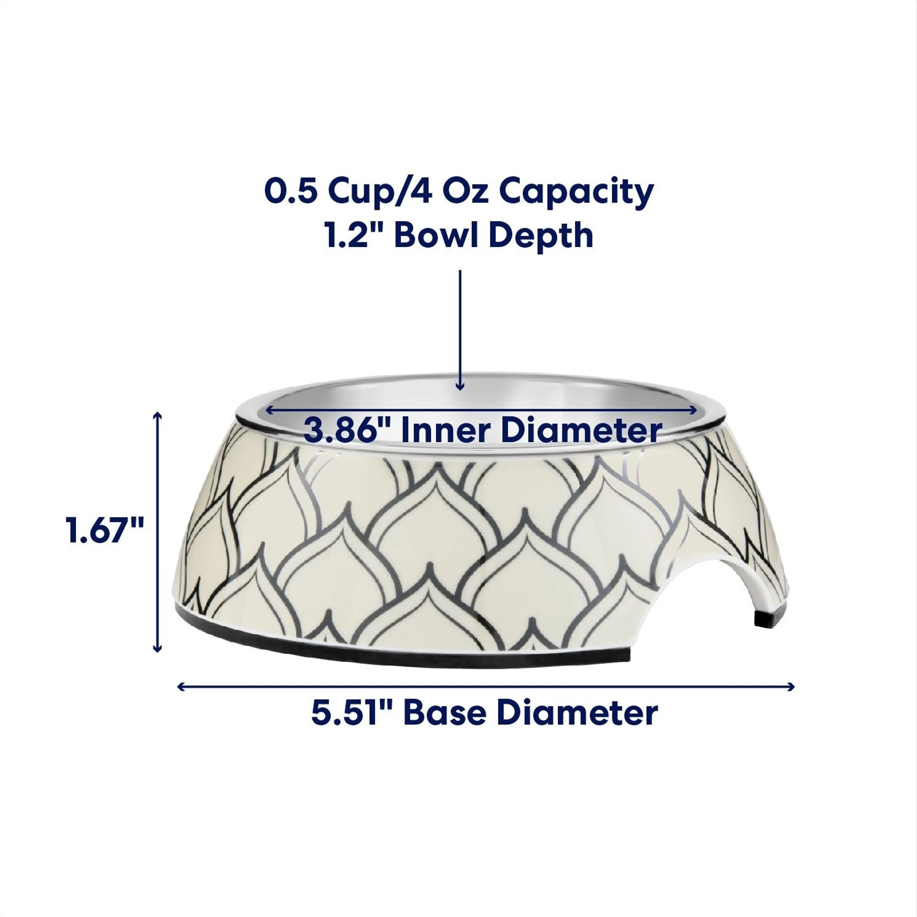 - Melamine base features a Moroccan print that elevates your dog’s dining experience.