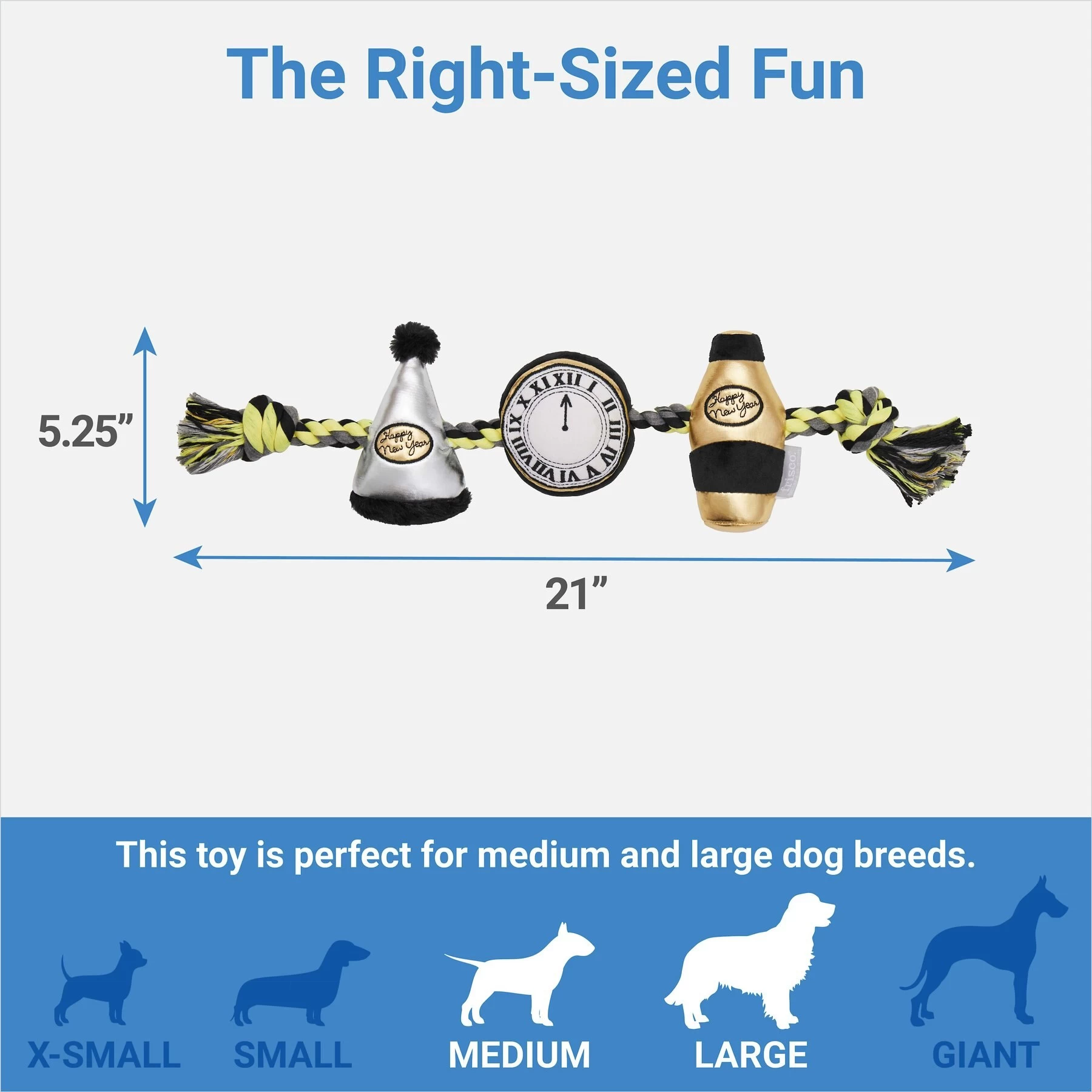 Frisco New Year’s Eve Midnight Countdown Plush With Rope Squeaky Dog Toy