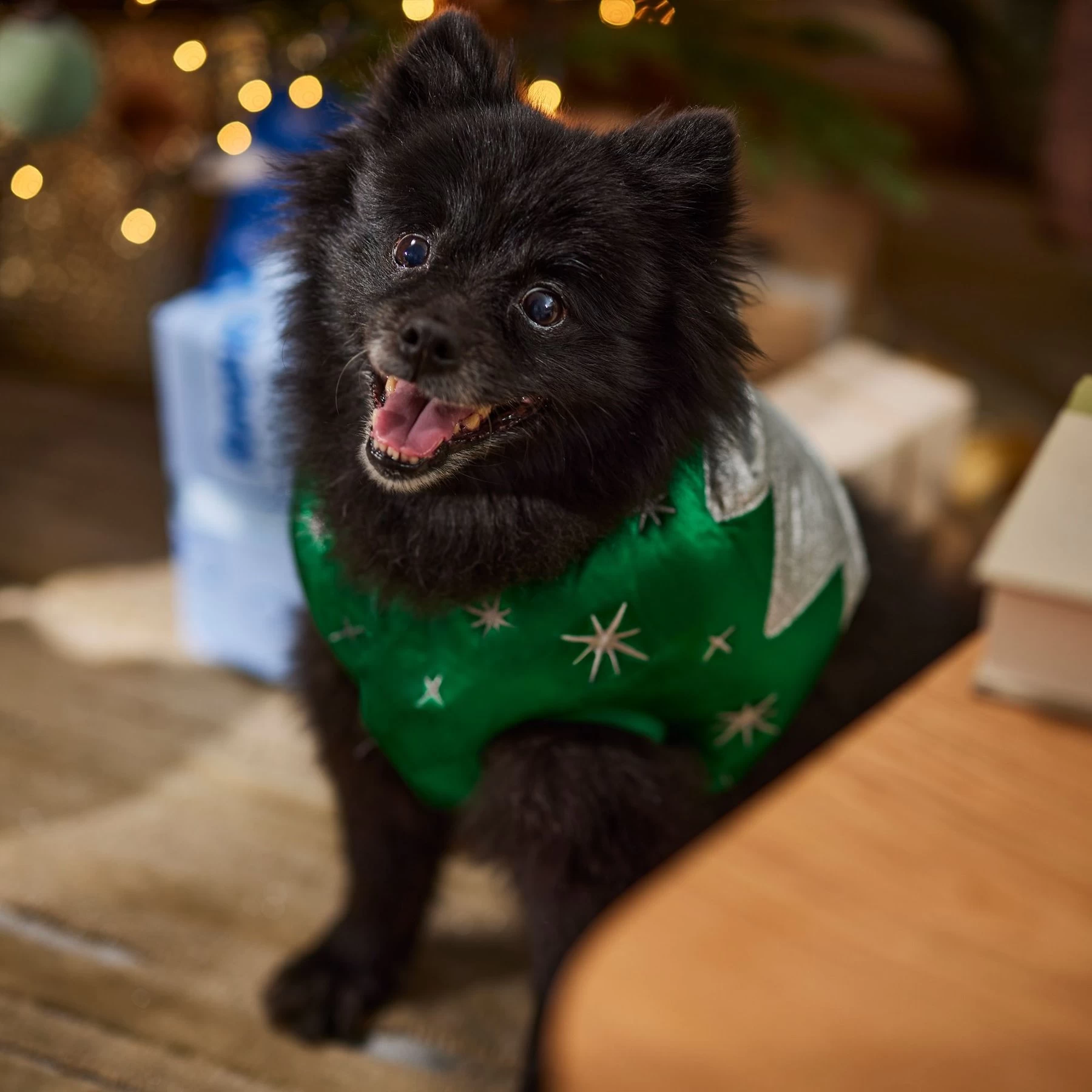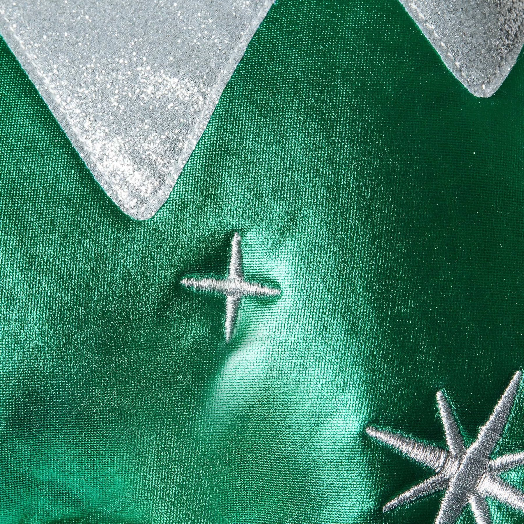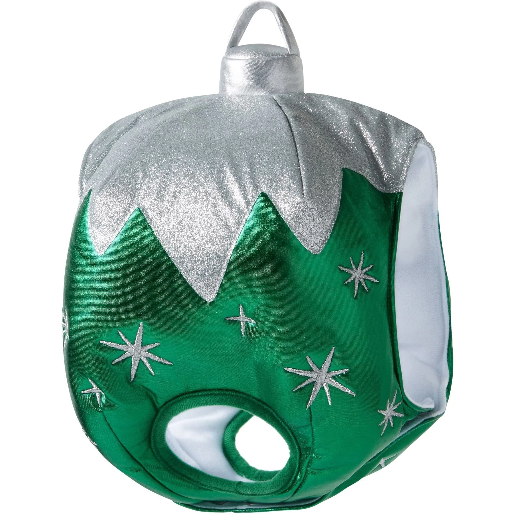 - This vibrant green ornament costume features embroidered silver glitter-star accents for a festive way for your pet to celebrate the holidays.