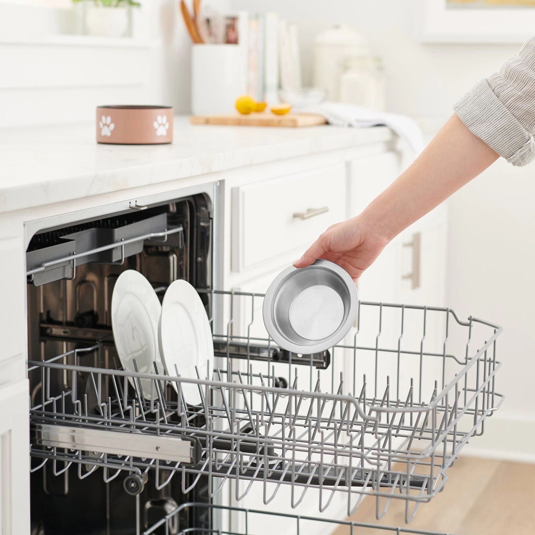 - Stainless-steel bowl has a raised design for a more natural height for your dog or kitty to eat and drink.