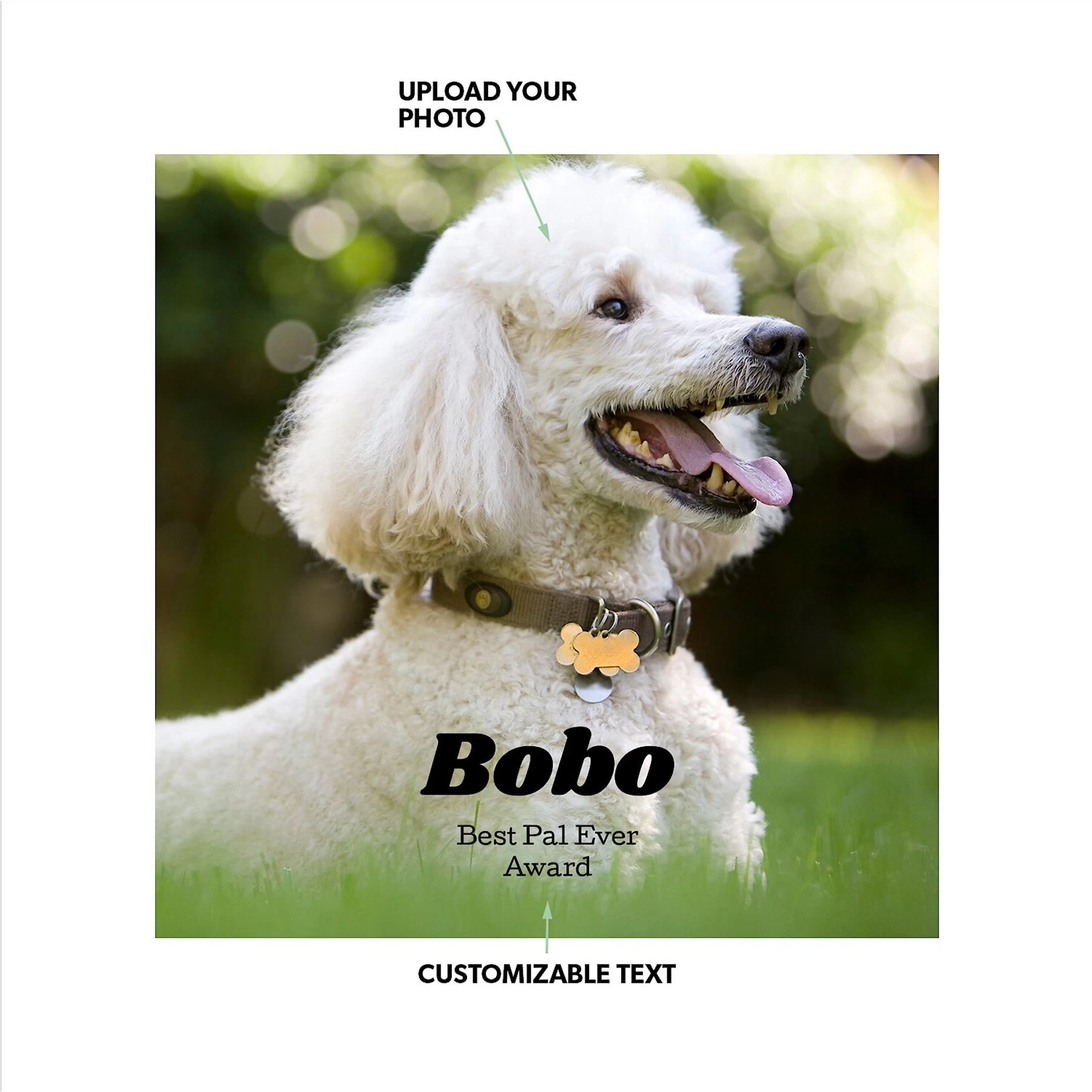- Three customizable text fields let you make it unique, just like your pet.
