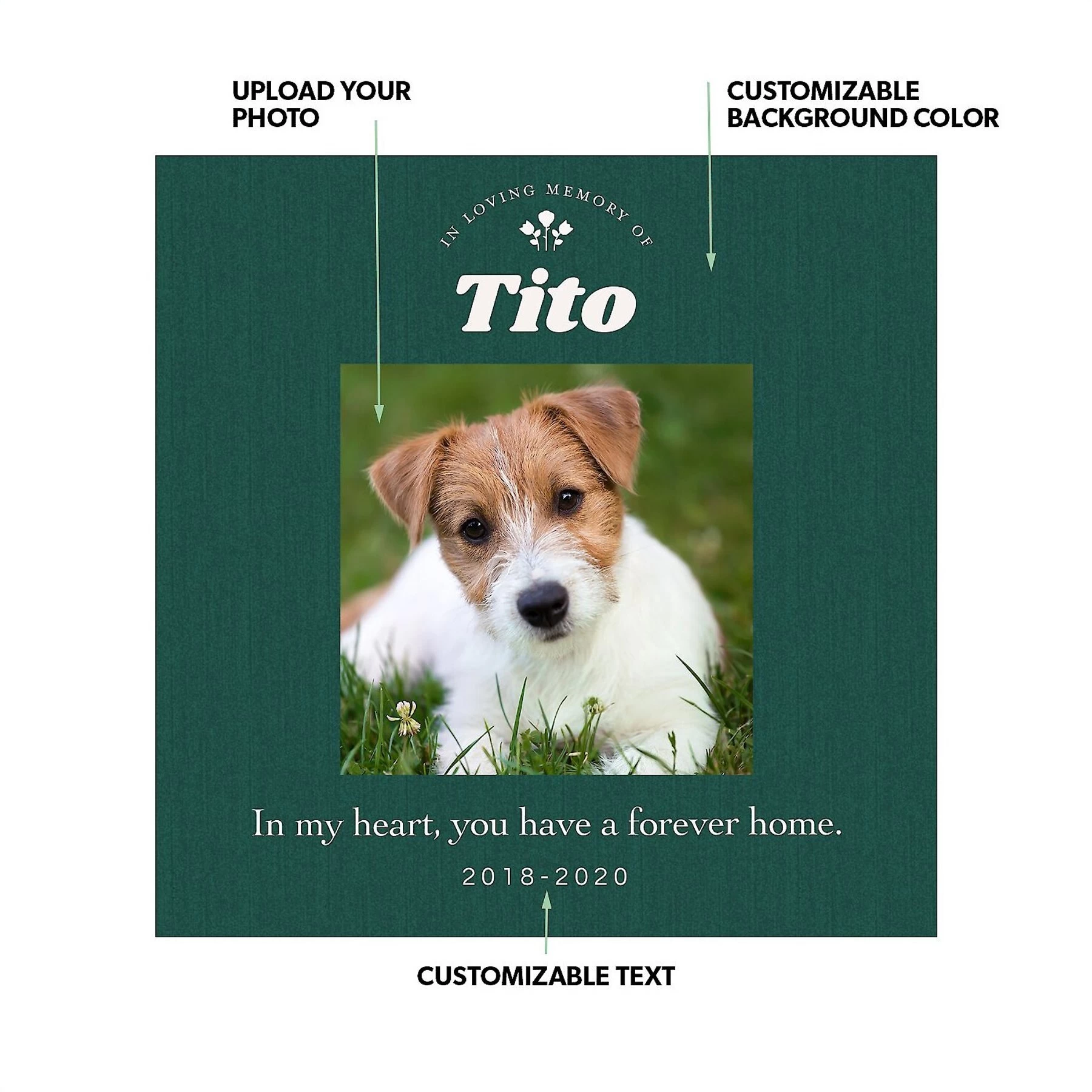- Personalizable with your favorite photo of a pet who lives forever in your heart.