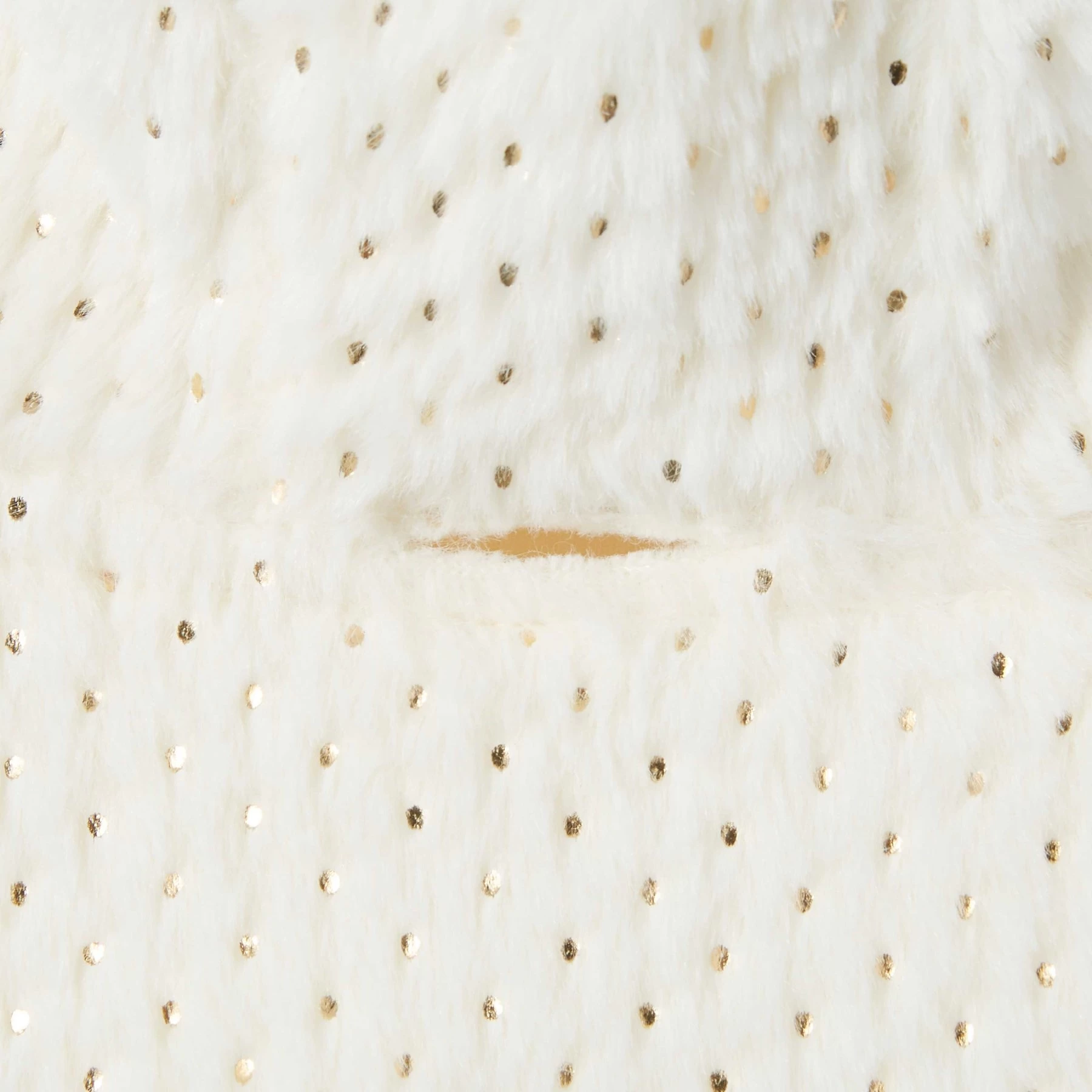 - Plush, faux fur material with foil gold polka dots to add some extra pizzazz.