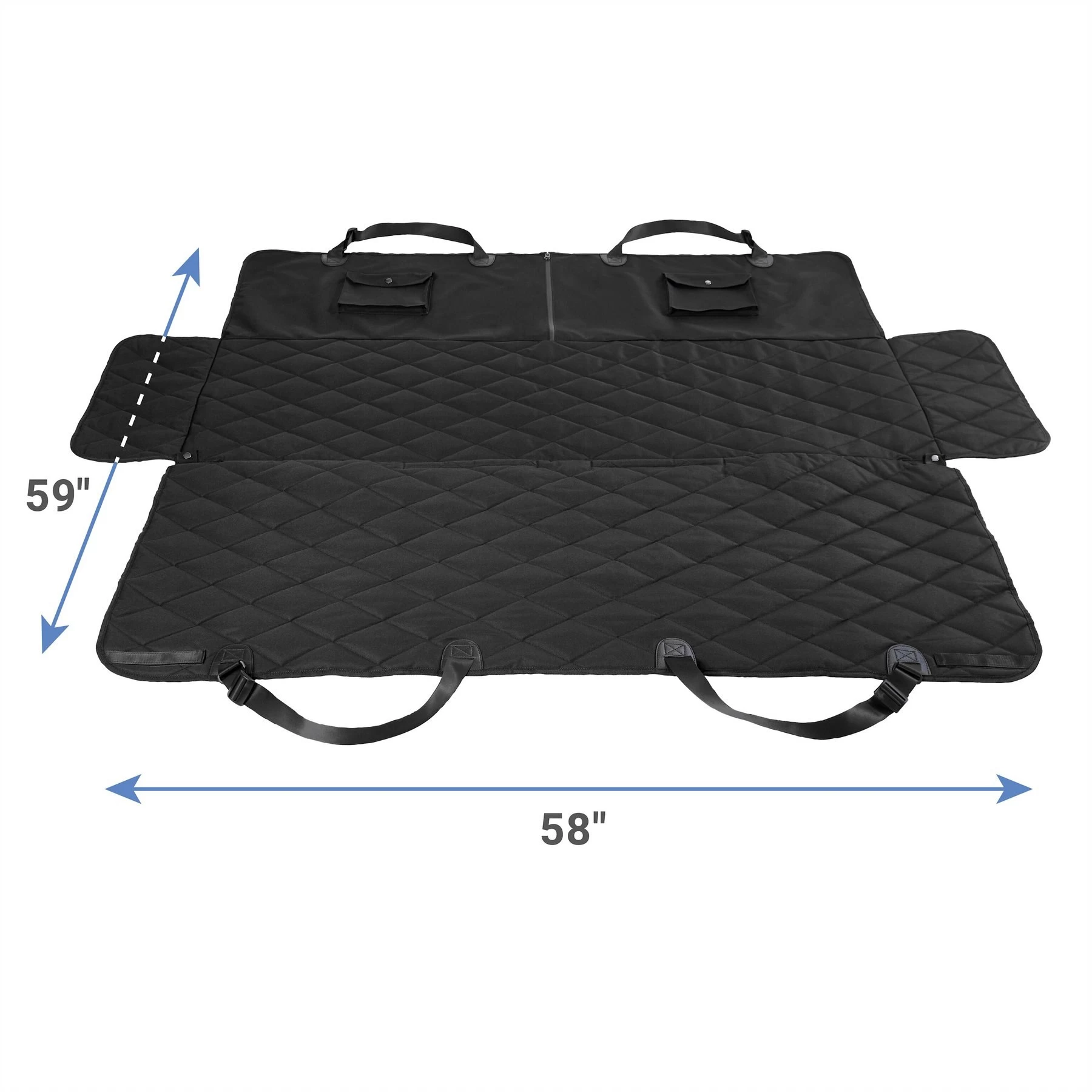 - Accommodates a human companion or the use of pet vehicle restraint systems with easy-access, closeable seat belt slits. Features “seat belt keepers”—flaps with a snap to hold the seat belt in place when not in use. Front seat passengers can conveniently reach into the backseat using the hidden zipper for easy access.