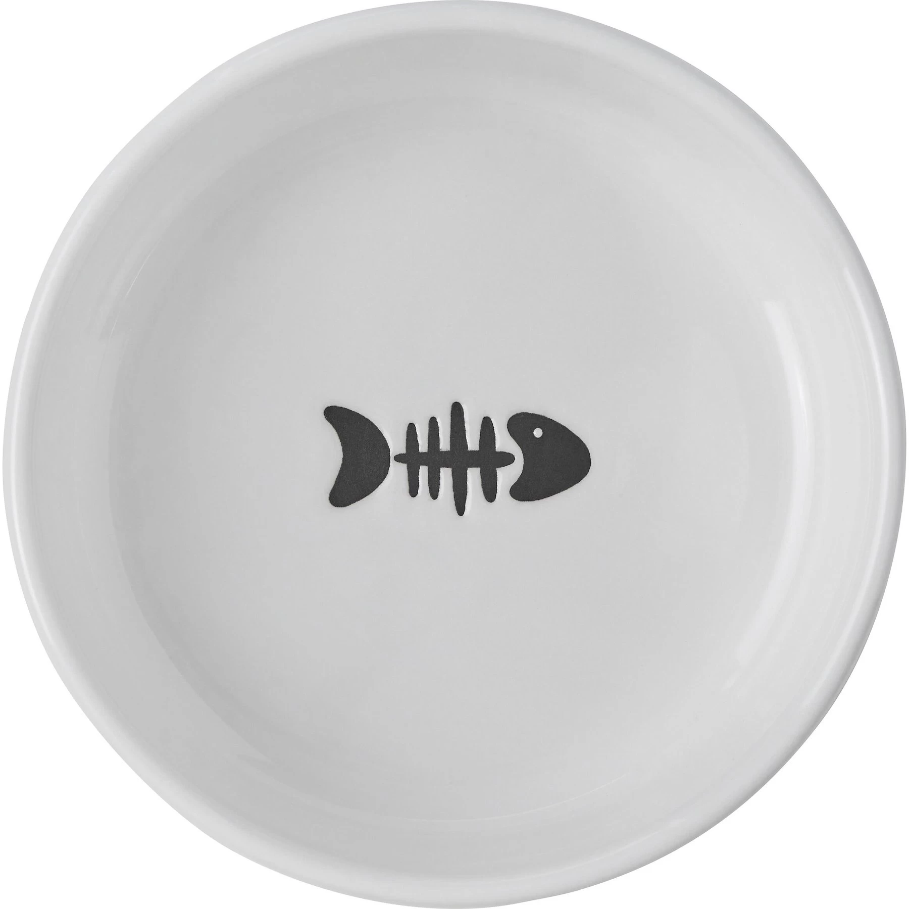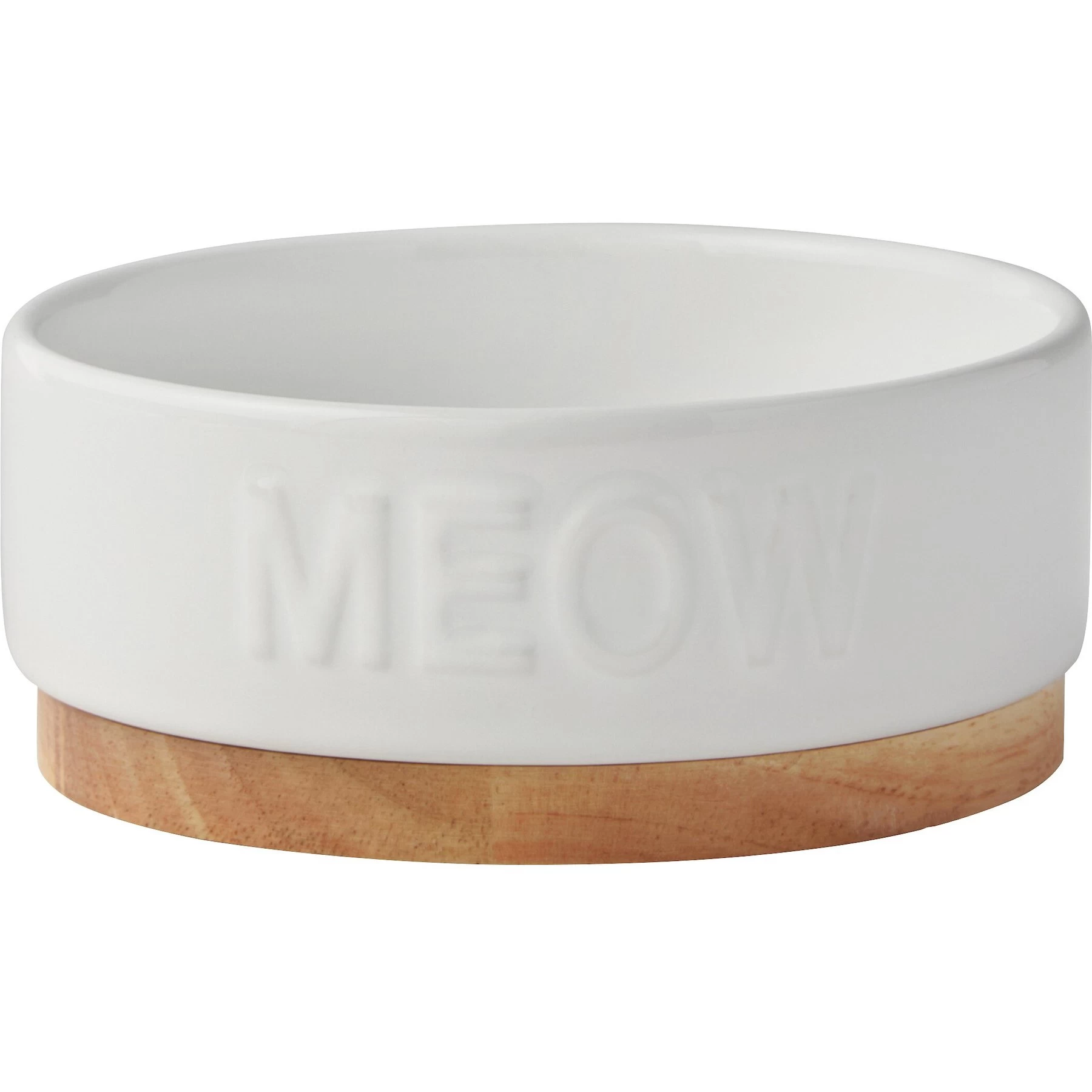 Frisco Round Meow Non-skid Ceramic Cat Bowl With Wood Base