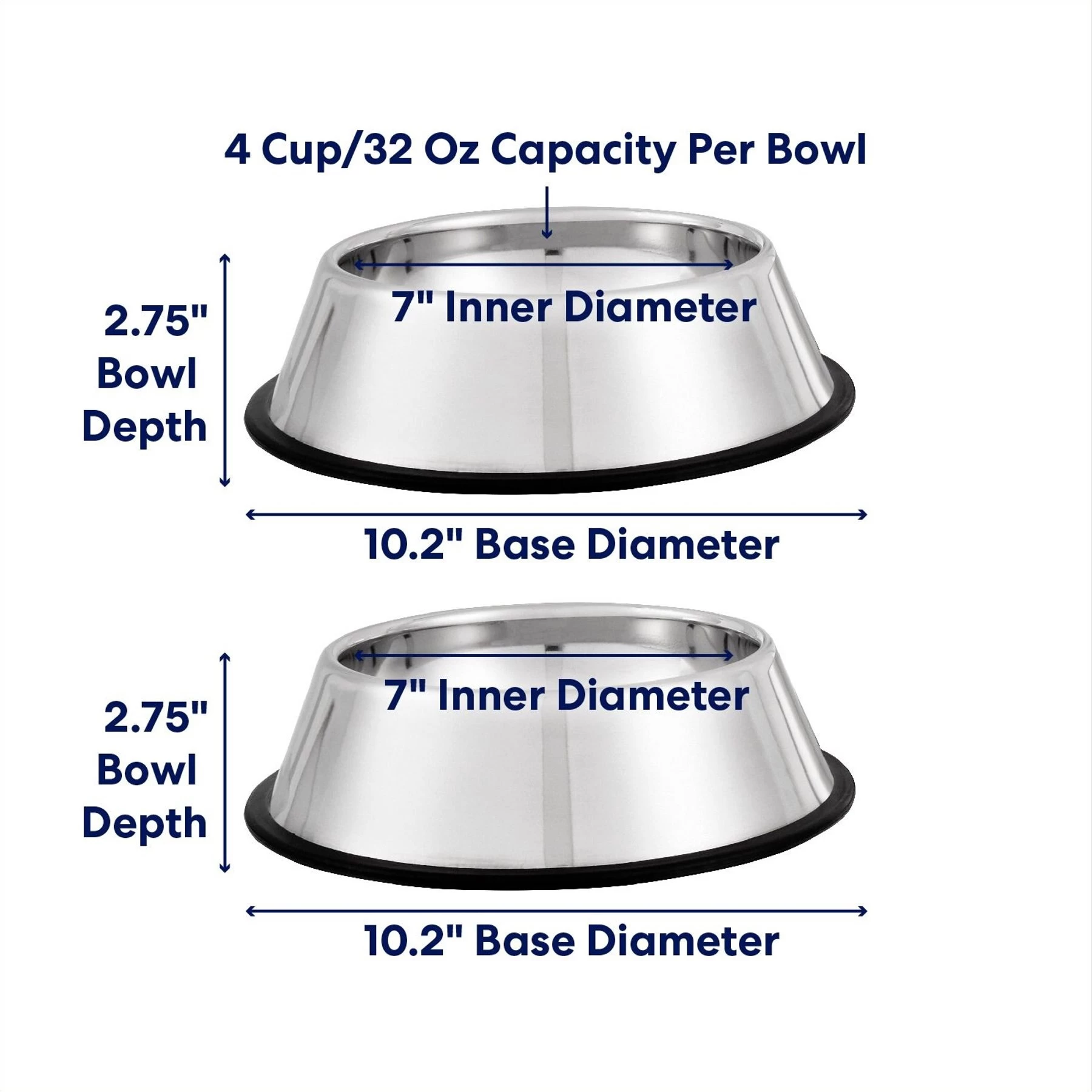 - Durable stainless steel pet bowl is stain- and rust-resistant.