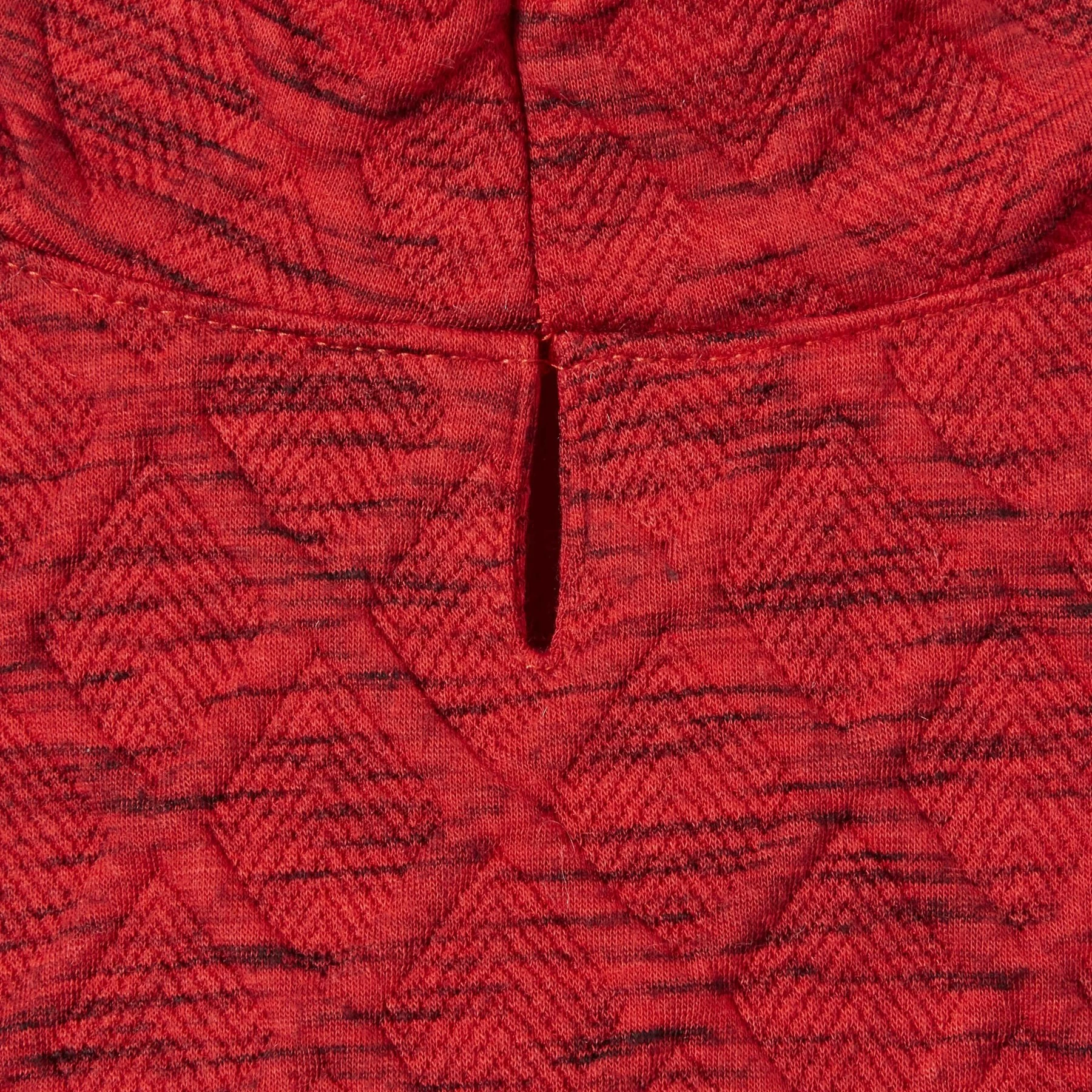 - Stretchy knit fabric with textured, heather red color.