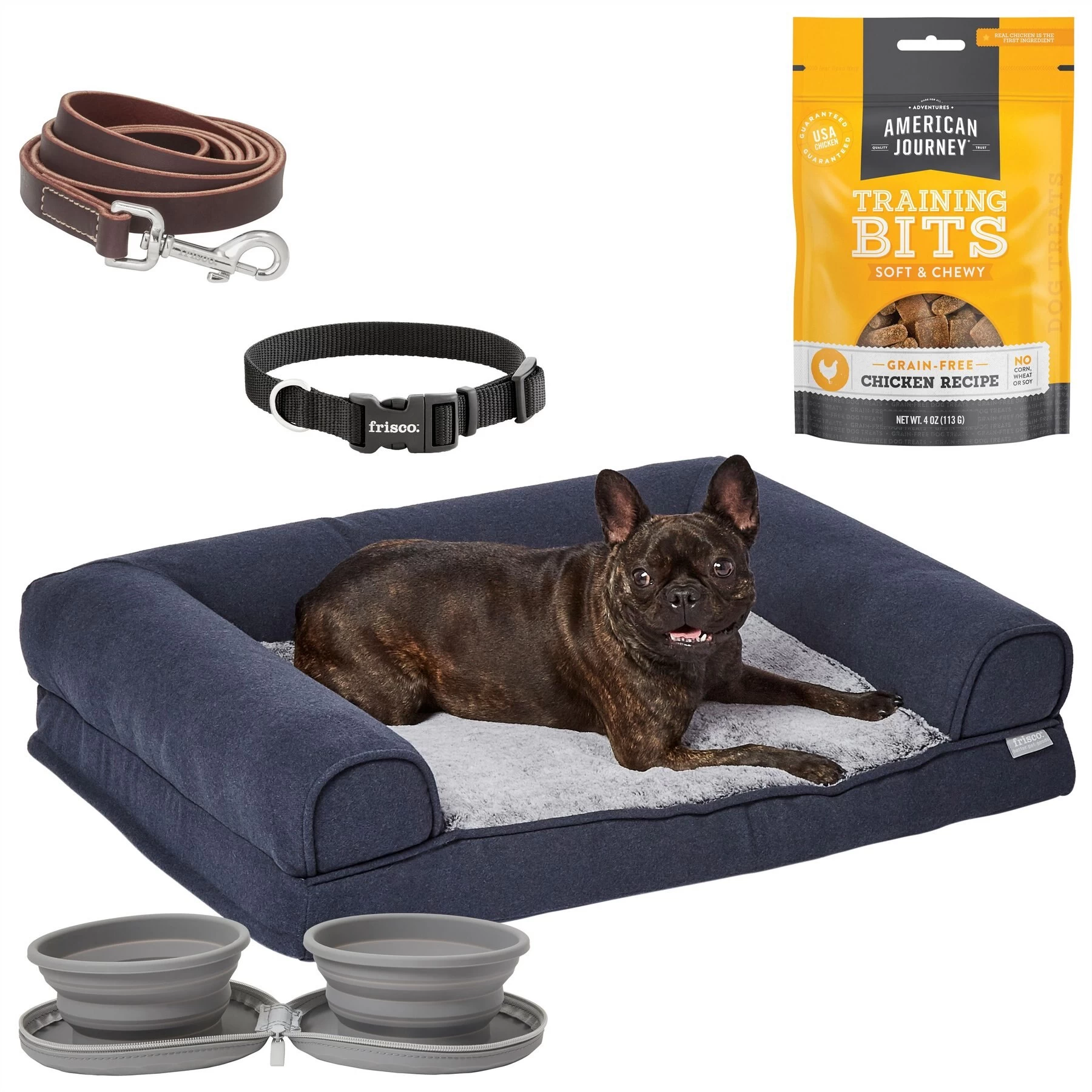 Frisco Heathered Woven Orthopedic Sofa Bolster Dog Bed w/Removable Cover, Gray, Large — This sofa bed will be your pup’s new favorite spot! Let your BFF rest their paws on the orthopedic convoluted foam sleep surface.