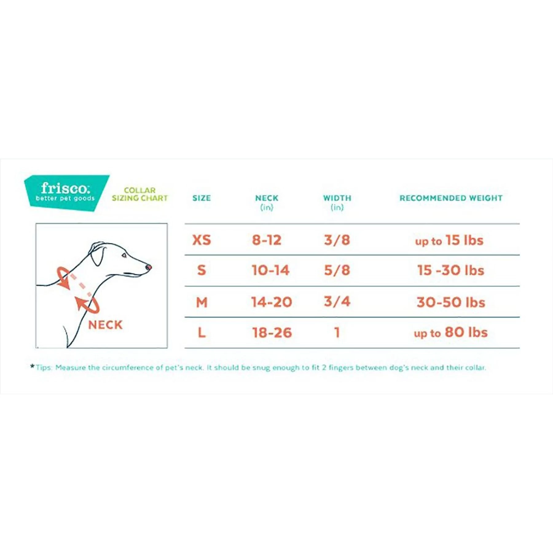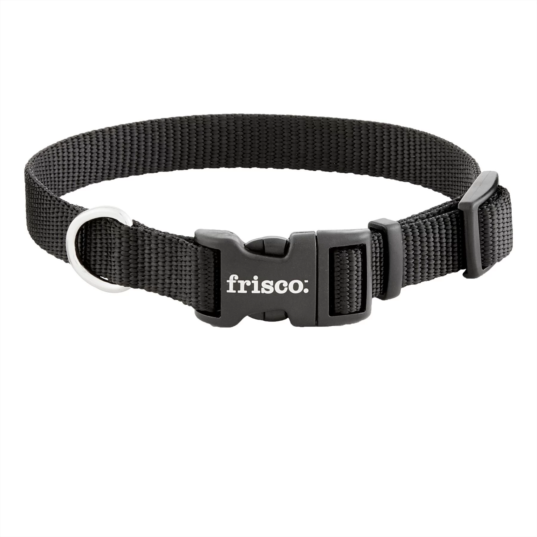 Frisco Solid Nylon Dog Collar, Black, Small: 10 to 14-in neck, 5/8-in wide — Remember to measure your pet for the paw-fect fit. The Frisco Solid Nylon Dog Collar is a classic yet stylish collar that comes in a variety of colors and sizes so you can find just the right one for your dog. Designed for everyday wear, this collar prepares your pup for adventures outdoors and provides comfort and security during your daily walks.