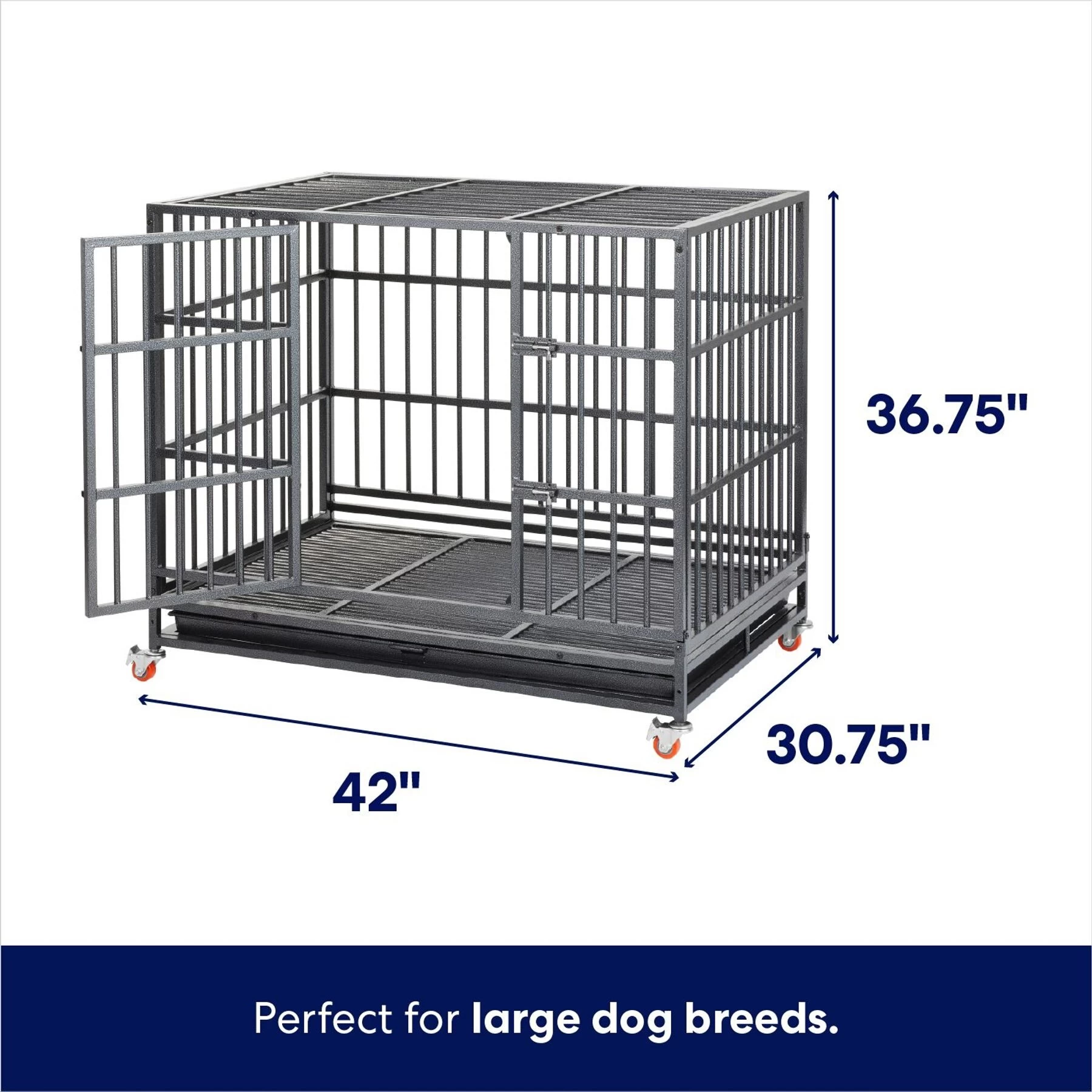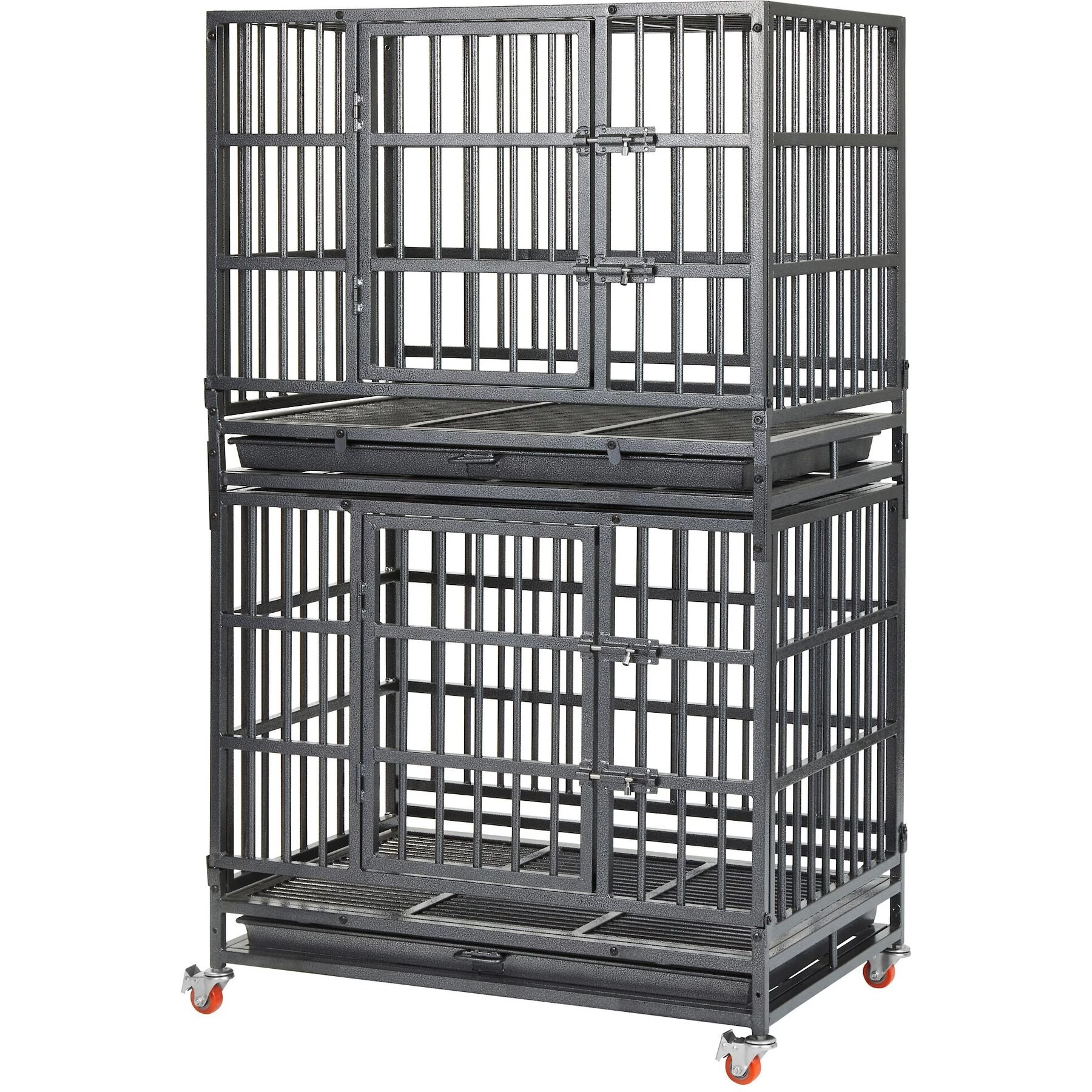 - The heavy-duty steel construction of this foldable, stackable crate helps keep dogs safe, comfy and secure while limiting its footprint on your floorspace.