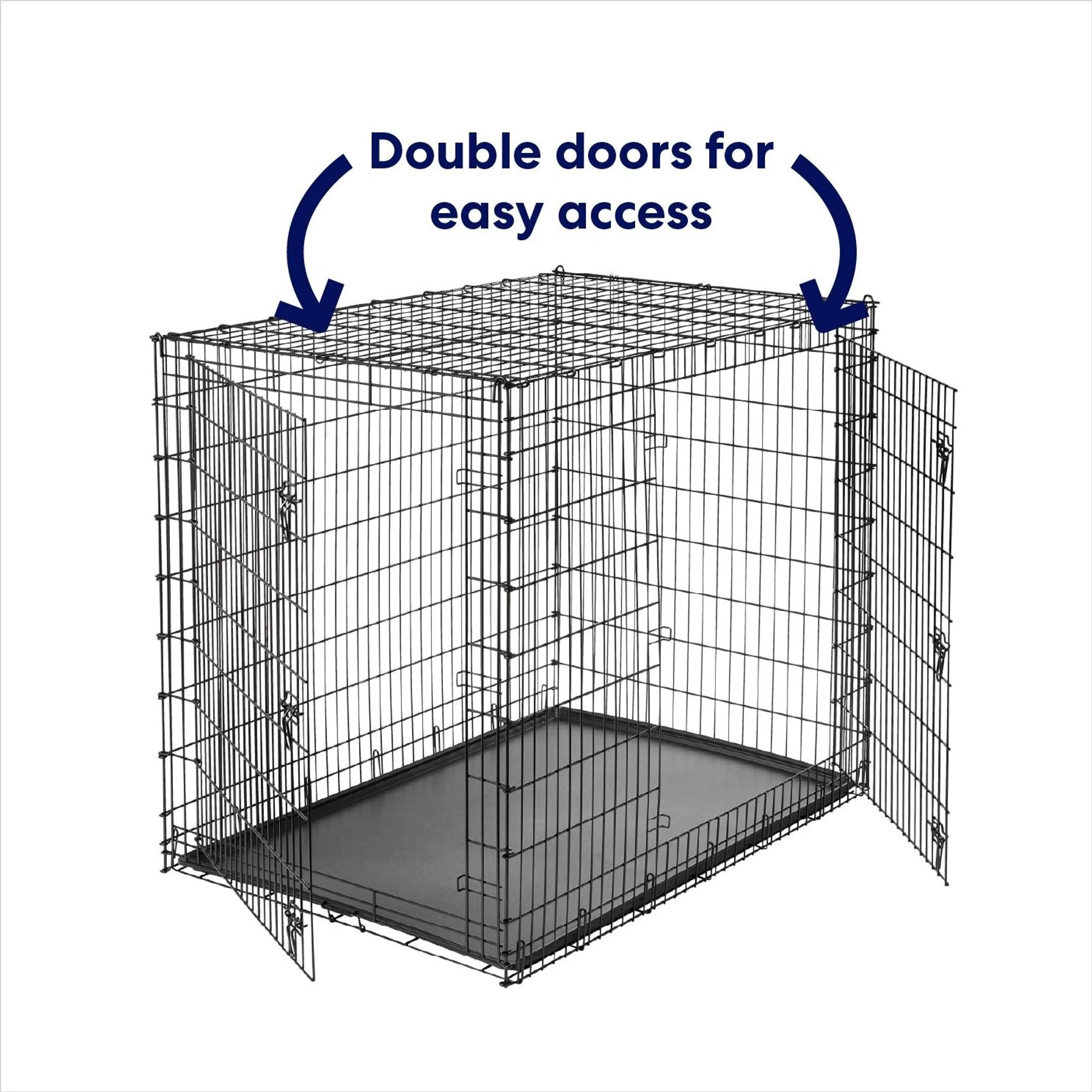 Frisco XX-Large Heavy Duty Enhanced Lock Double Door Wire Dog Crate, Fold & Carry Wire Dog Crate & Mat Kit, 54″