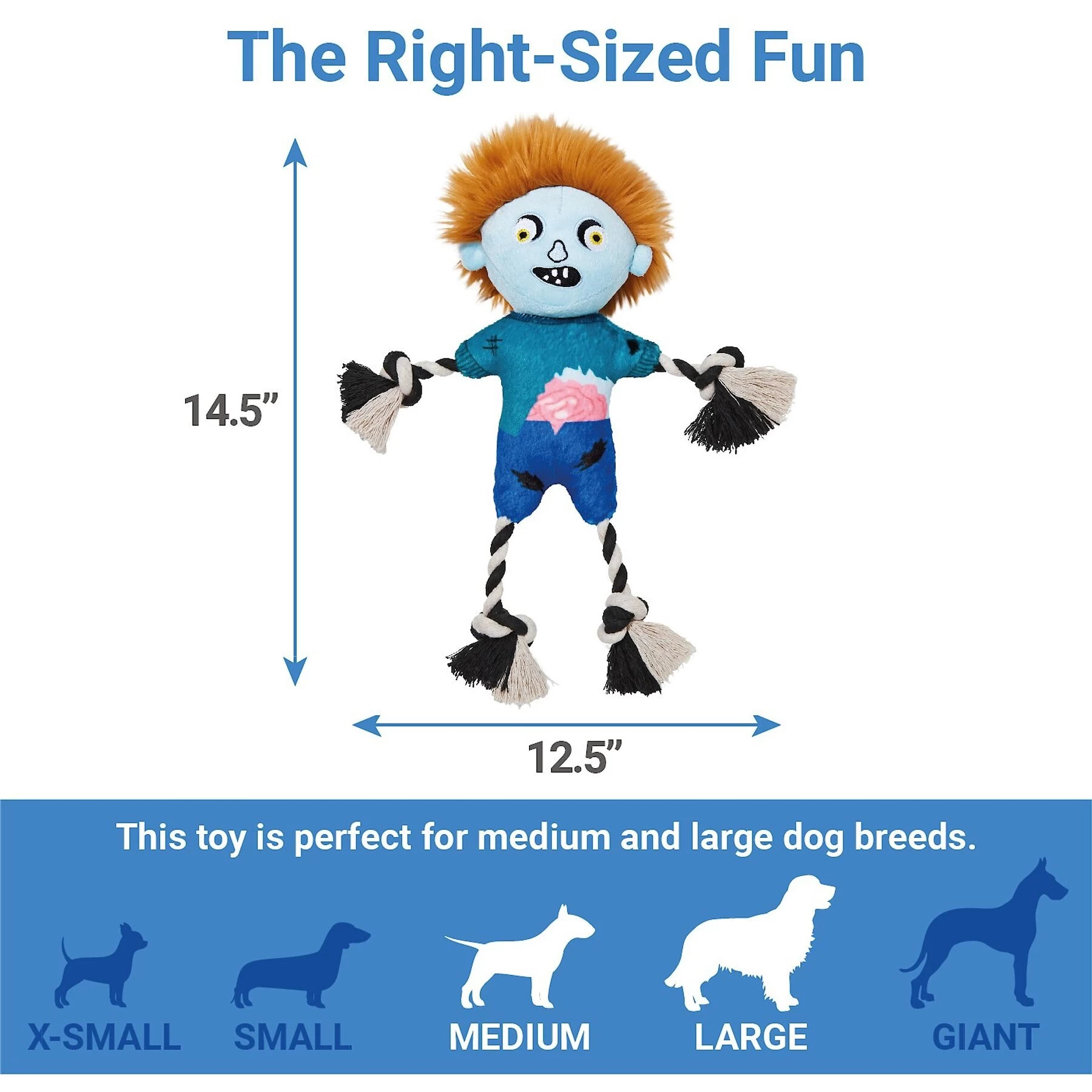 Frisco Zombie Boy Plush With Rope Squeaky Dog Toy