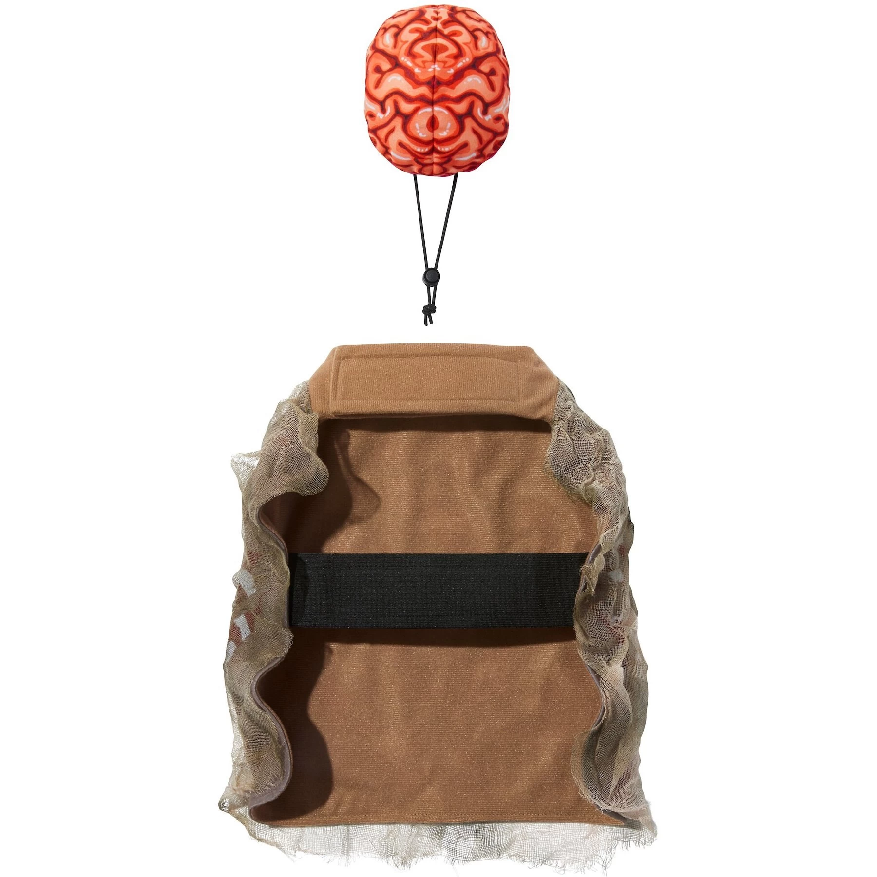 - Two-piece design with a tattered shirt and a brainy headpiece for a complete, creepy look.