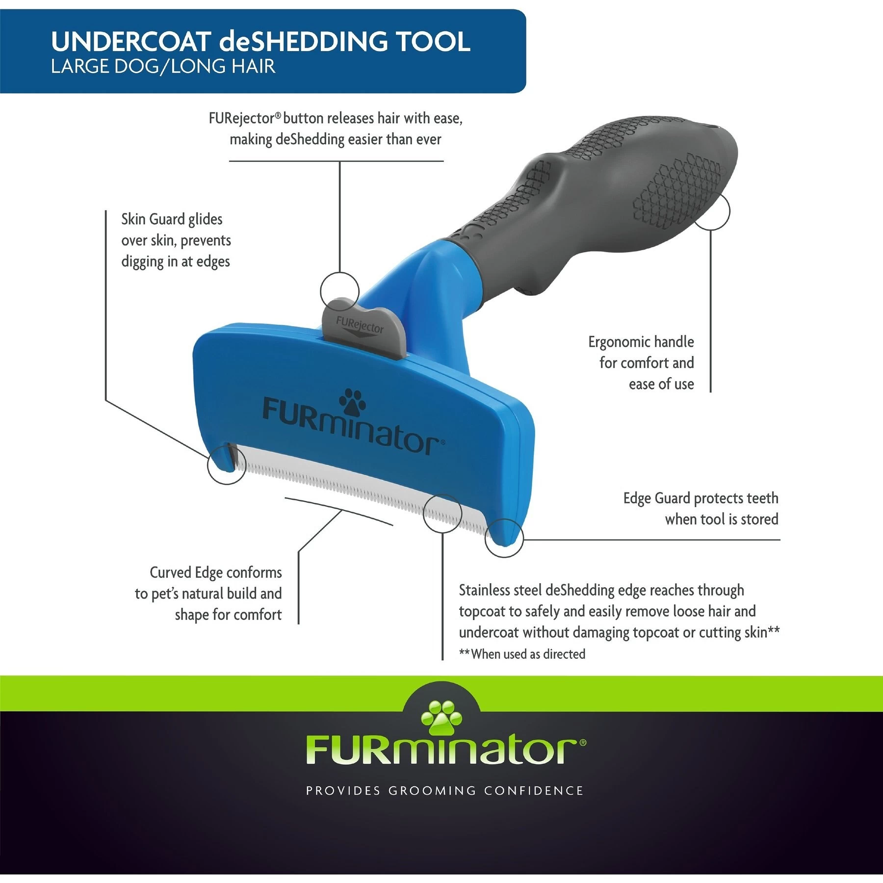 - Features a stainless-steel edge that reaches beneath the long topcoat, removing undercoat and loose hair.